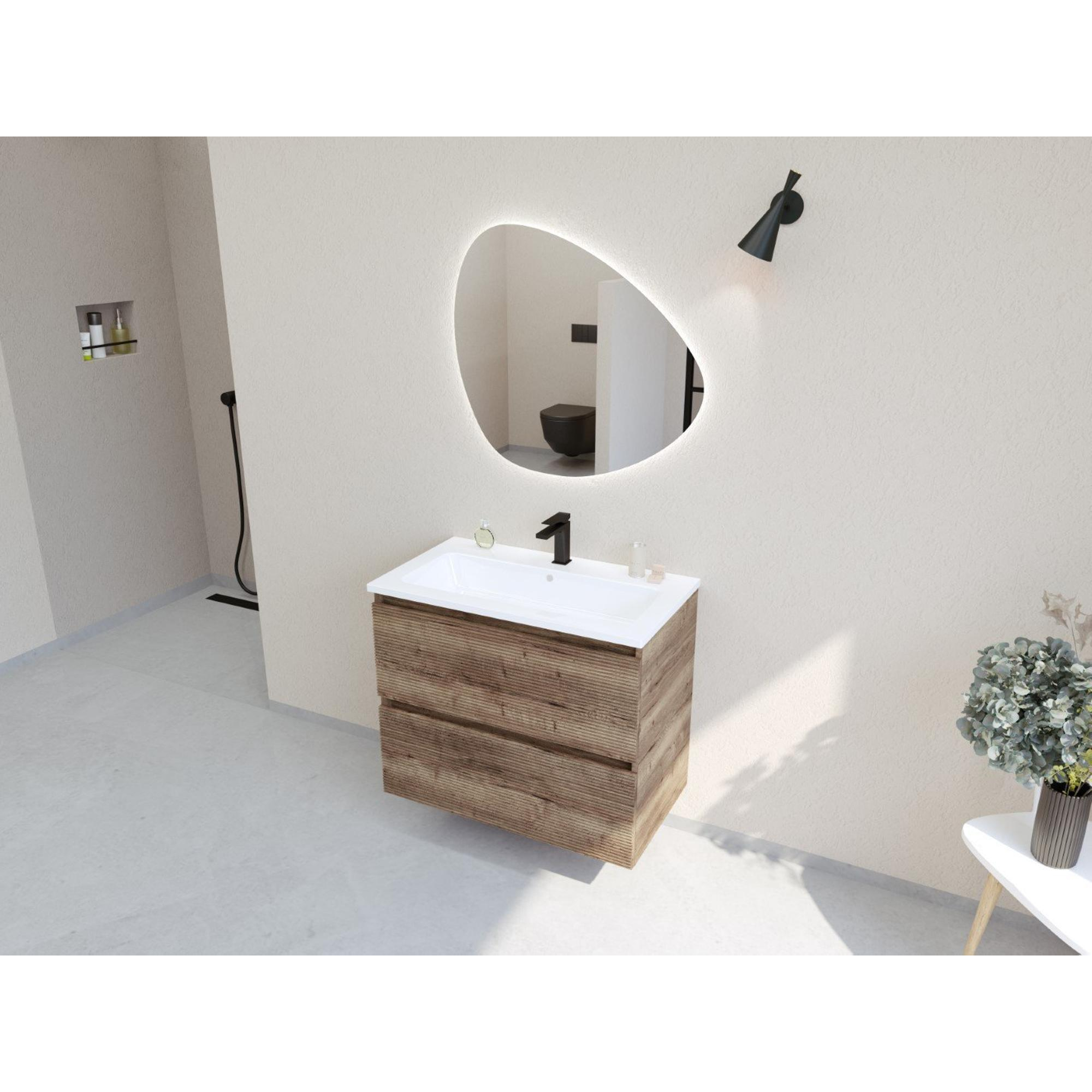 HR badmeubelen Infinity XXL 3D Badkamermeubelset - 80 cm - 1 keramische wasbak gala wit - 1 kraangat - 2 lades - charleston