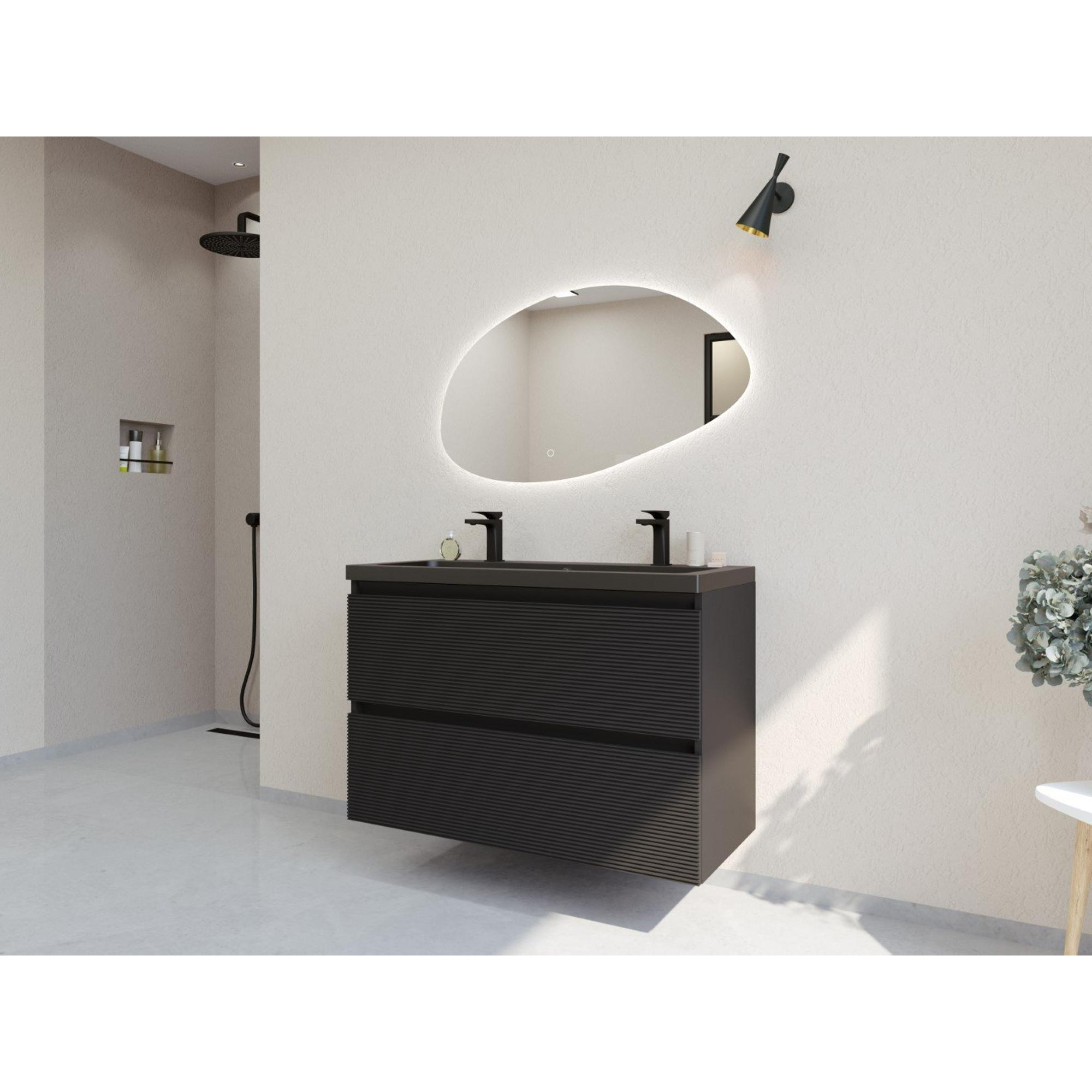 HR badmeubelen Infinity XXL 3D Badkamermeubelset - 100 cm - 1 keramische wasbak djazz mat zwart - 2 kraangaten - 2 lades - mat zwart