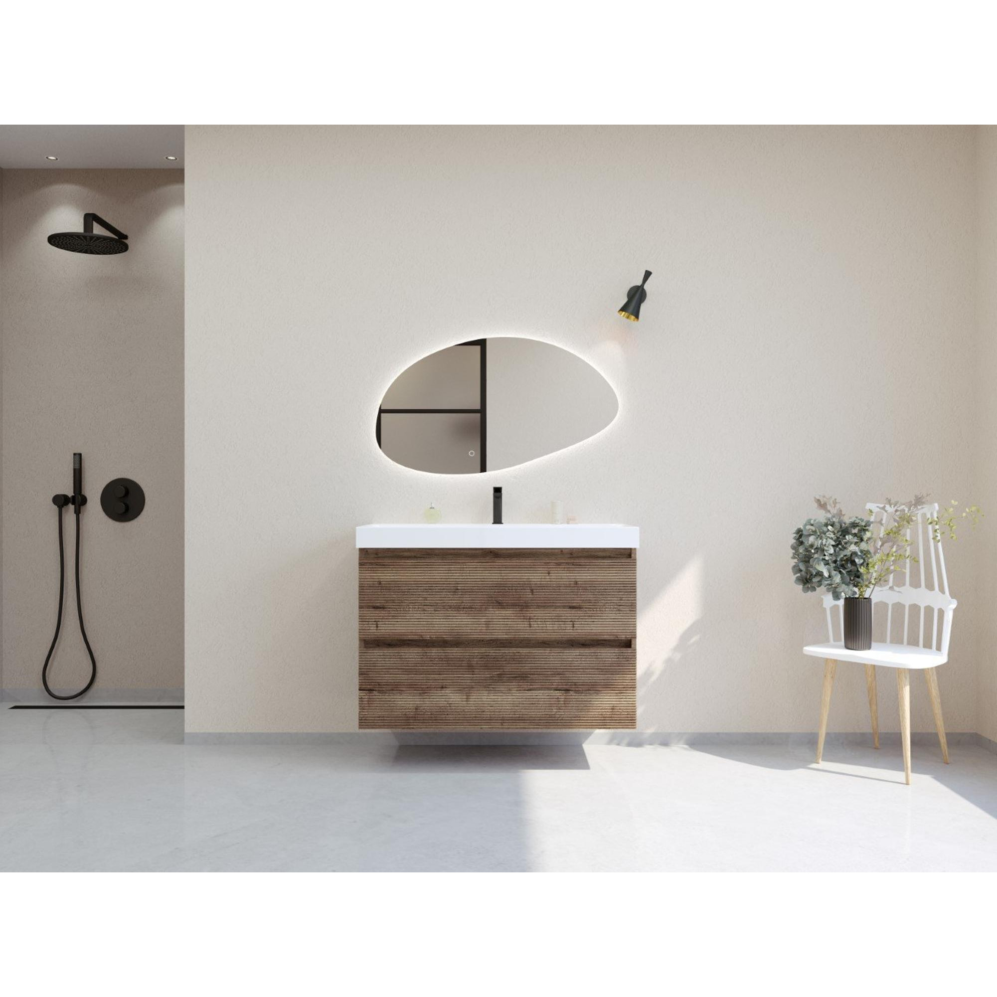HR badmeubelen Infinity XXL 3D Badkamermeubelset - 100 cm - 1 keramische wasbak just wit - 1 kraangat - 2 lades - charleston