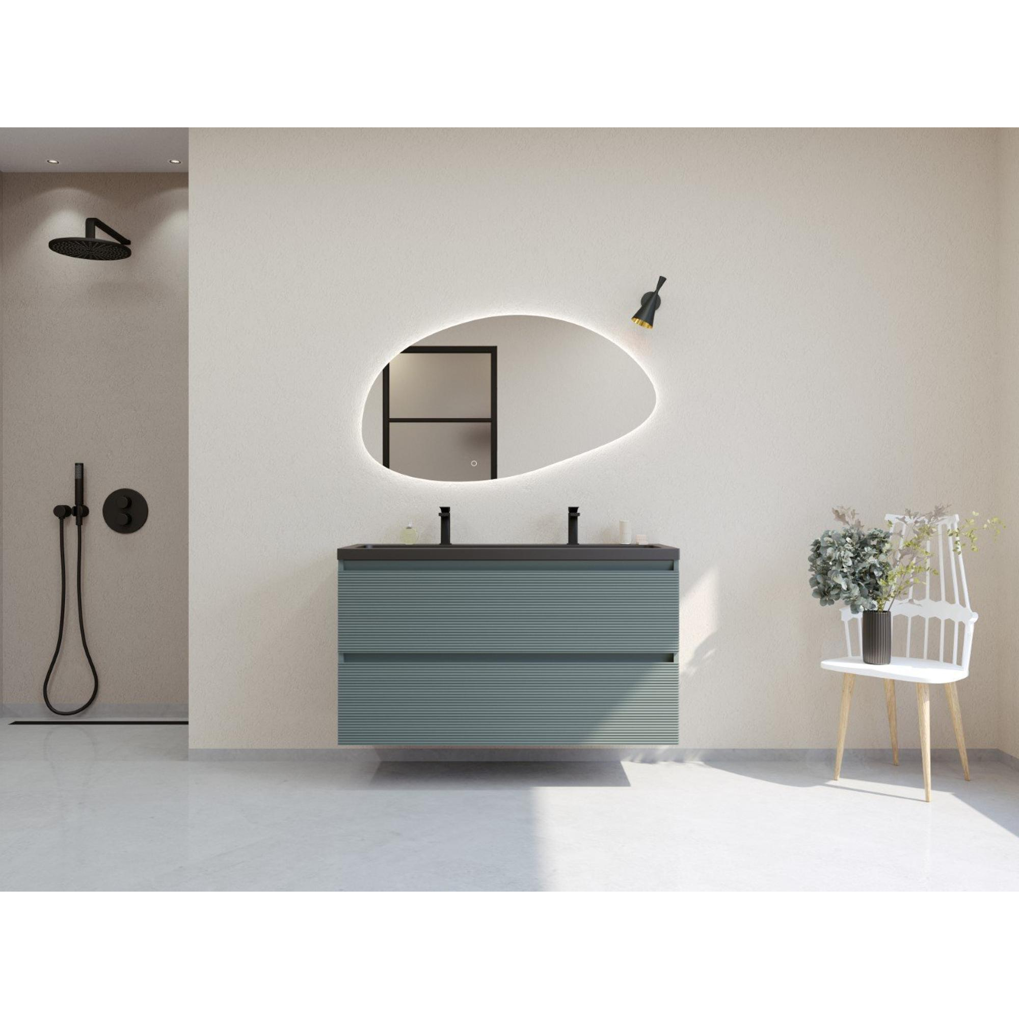 HR badmeubelen Infinity XXL 3D Badkamermeubelset - 120 cm - 1 keramische wasbak djazz mat zwart - 2 kraangaten - 2 lades - mat petrol