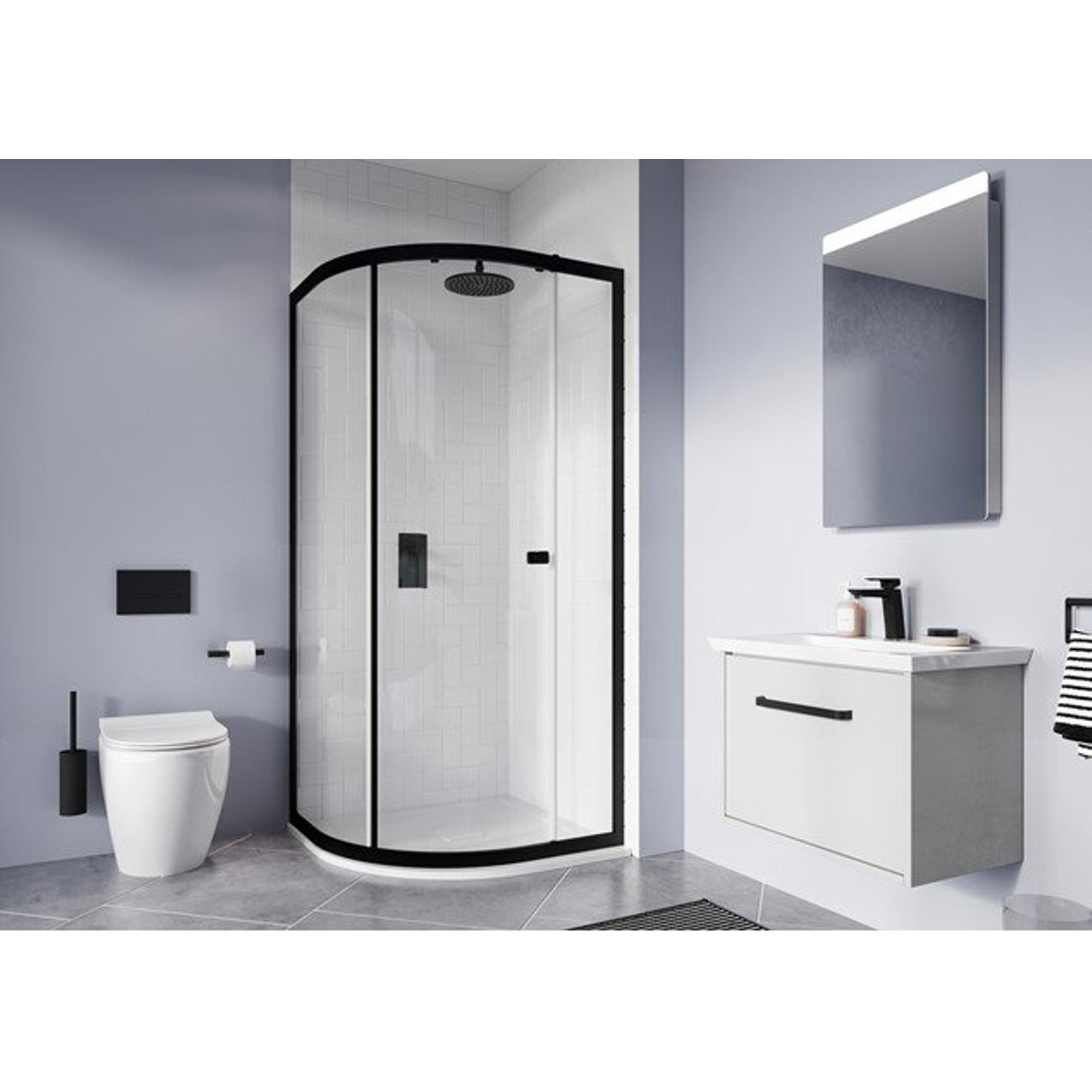 De Crosswater Clear 6 Douchecabine half rond in matt Black straalt stijl en elegantie uit. Het matte zwarte frame voegt een vleugje luxe toe aan je badkamerinterieur. De halfronde vorm zorgt voor een unieke uitstraling en maximaliseert de ruimte, waardoor je een gevoel van openheid en comfort ervaart.