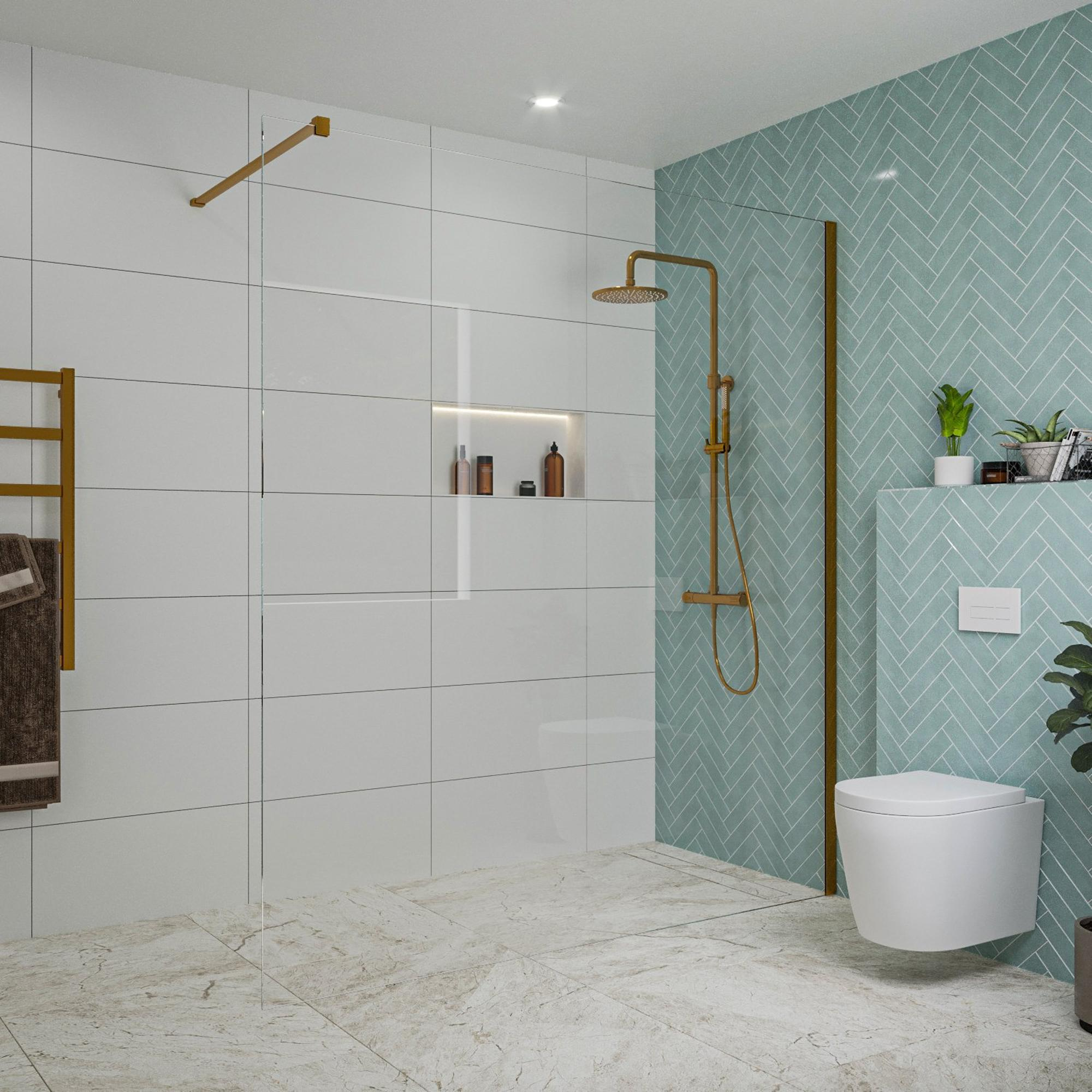 Met zijn hoogwaardige materialen en doordacht ontwerp straalt de Fortifura Galeria inloopdouche pure luxe uit. Het heldere glas zorgt voor een open en ruimtelijk gevoel, terwijl het geborsteld koper een vleugje elegantie toevoegt. Deze inloopdouche is een statement van luxe en comfort in elke badkamer.
