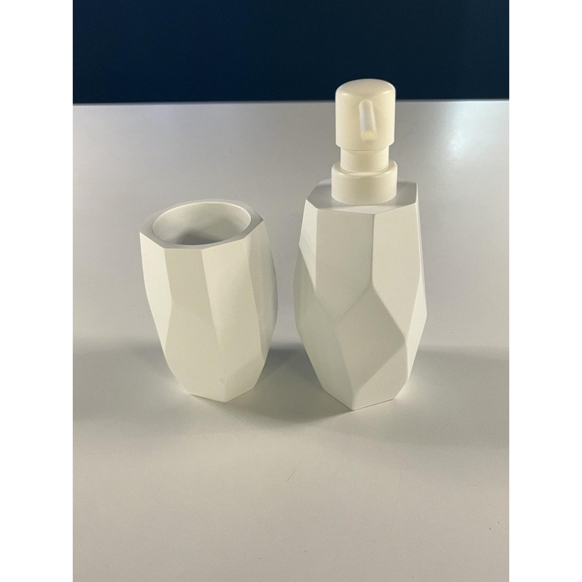 Nemo Stock - Natural Raja - beker (120 x 70 mm) + zeepdispenser (190 x 80 mm) - materiaal hars - wit