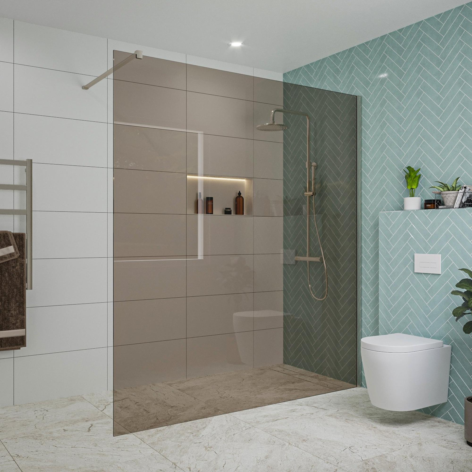 Fortifura Galeria inloopdouche - 180x200cm - rookglas - wandarm - geborsteld RVS