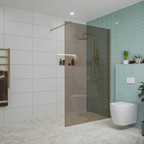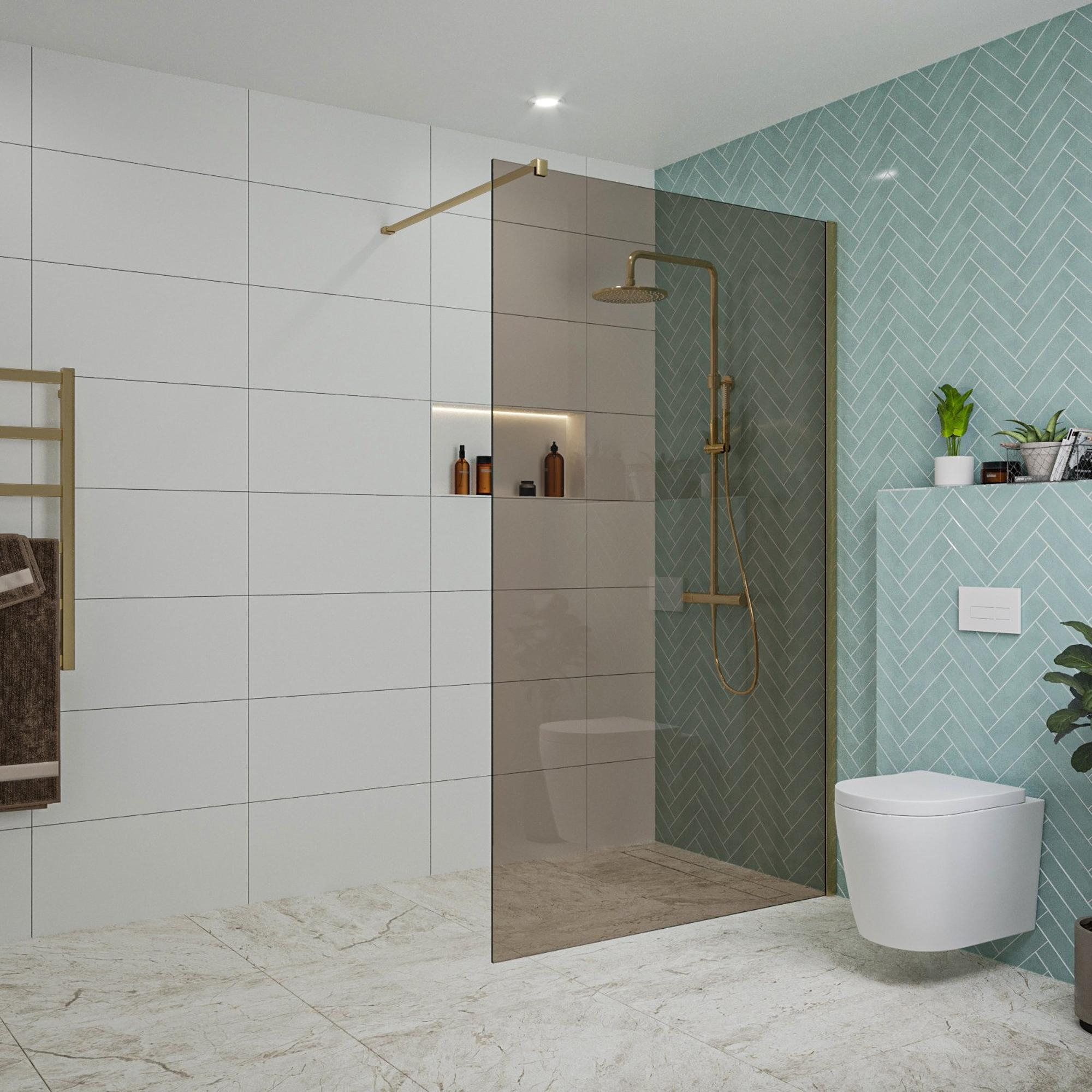Fortifura Galeria inloopdouche - 120x200cm - rookglas - wandarm - geborsteld messing