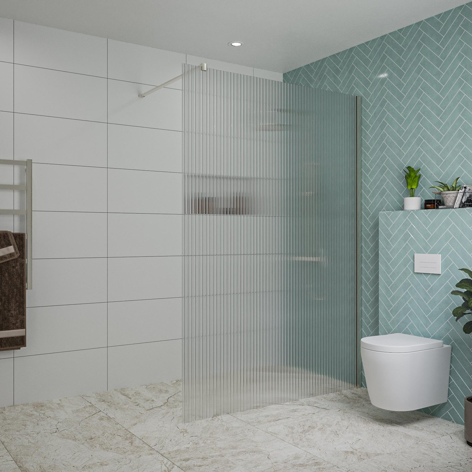 Fortifura Galeria inloopdouche - 140x200cm - ribbelglas - wandarm - geborsteld RVS