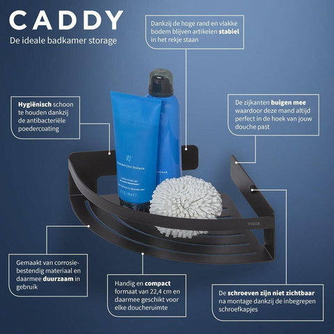 Tiger Caddy Douchemand hoek 224 cm Zwart