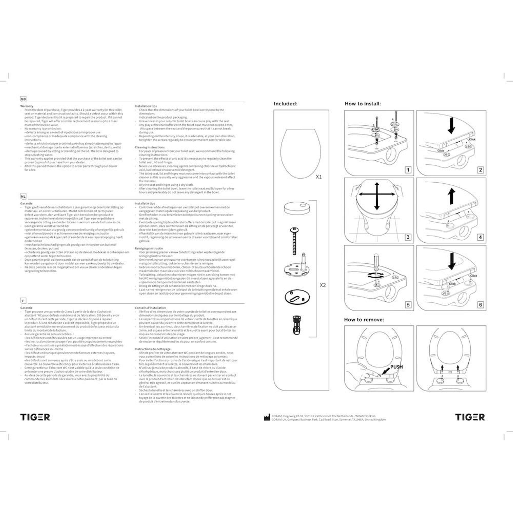 Alle Tiger producten zijn uitvoerig getest. Niets laten ze aan het toeval over. Wat ze leveren moet namelijk goed zijn. Als er toch iets mis is met je Tiger product, kun je dus op Tiger rekenen. De garantietermijn van een Tiger product vind je achterop de verpakking. Op badkamermeubilair en douchecabines van Tiger heb je steevast 3 jaar garantie, op accessoires en kranen 5 jaar en toiletzittingen 2 jaar.