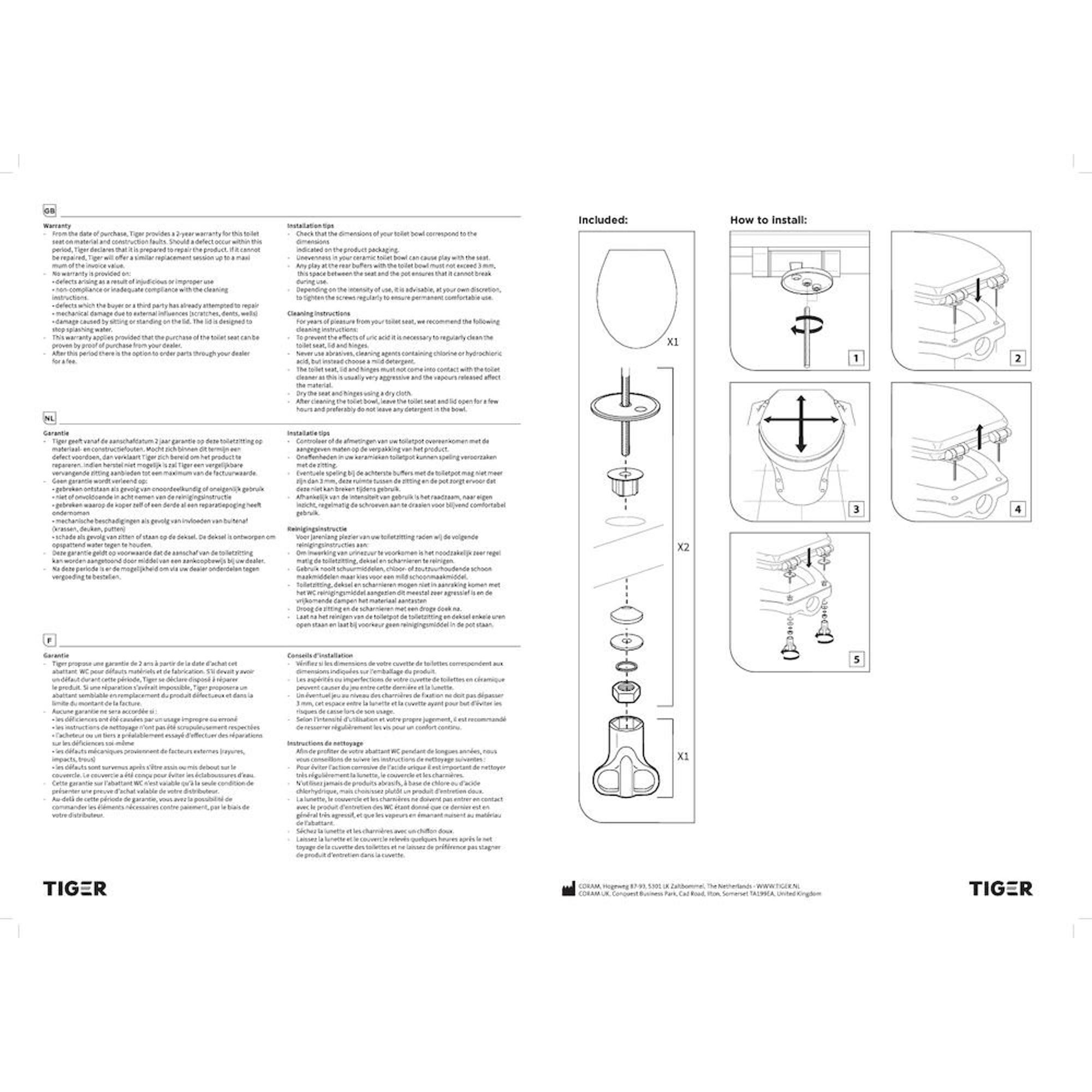 Alle Tiger producten zijn uitvoerig getest. Niets laten ze aan het toeval over. Wat ze leveren moet namelijk goed zijn. Als er toch iets mis is met je Tiger product, kun je dus op Tiger rekenen. De garantietermijn van een Tiger product vind je achterop de verpakking. Op badkamermeubilair en douchecabines van Tiger heb je steevast 3 jaar garantie, op accessoires en kranen 5 jaar en toiletzittingen 2 jaar.