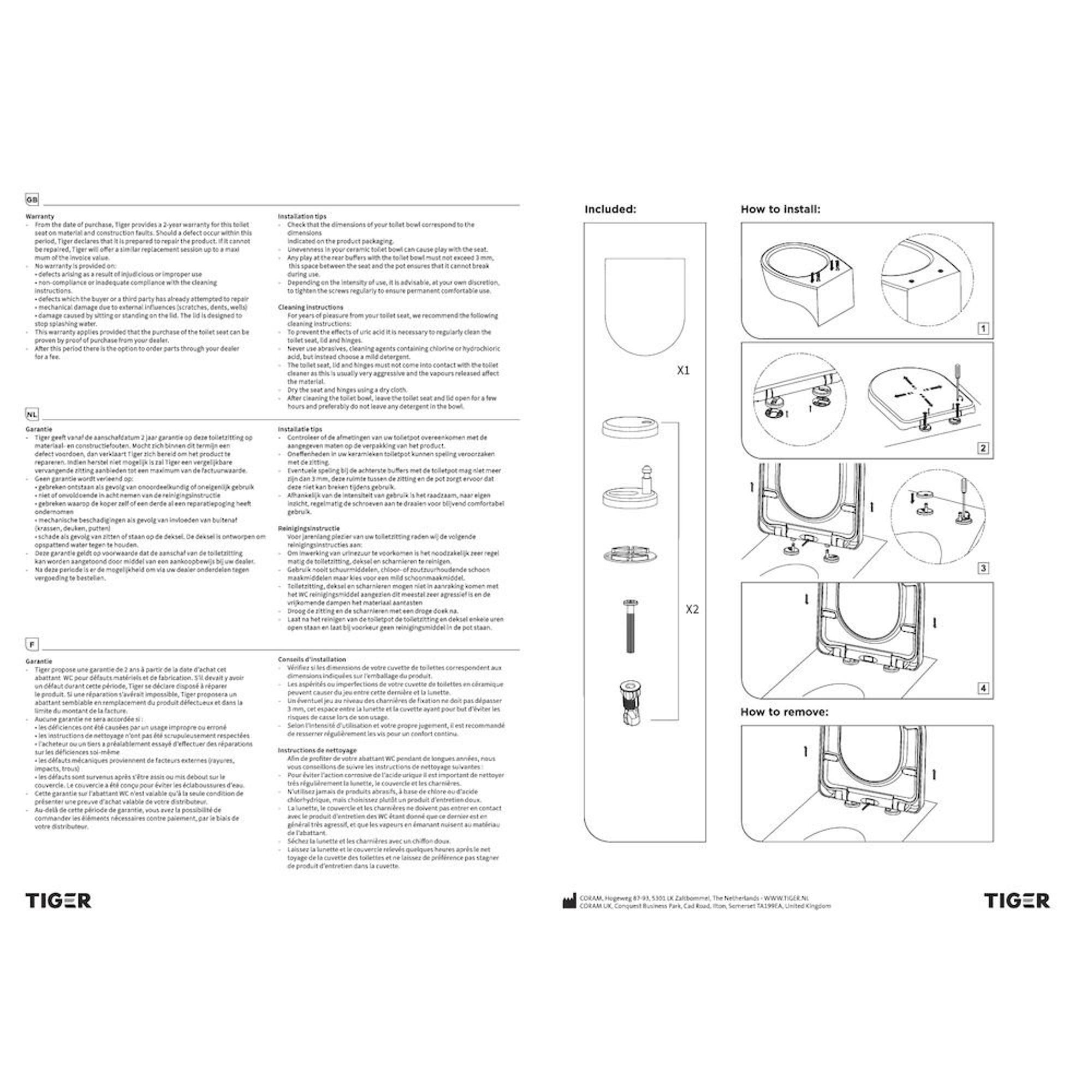 Alle Tiger producten zijn uitvoerig getest. Niets laten ze aan het toeval over. Wat ze leveren moet namelijk goed zijn. Als er toch iets mis is met je Tiger product, kun je dus op Tiger rekenen. De garantietermijn van een Tiger product vind je achterop de verpakking. Op badkamermeubilair en douchecabines van Tiger heb je steevast 3 jaar garantie, op accessoires en kranen 5 jaar en toiletzittingen 2 jaar.
