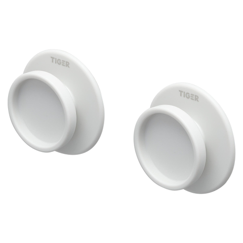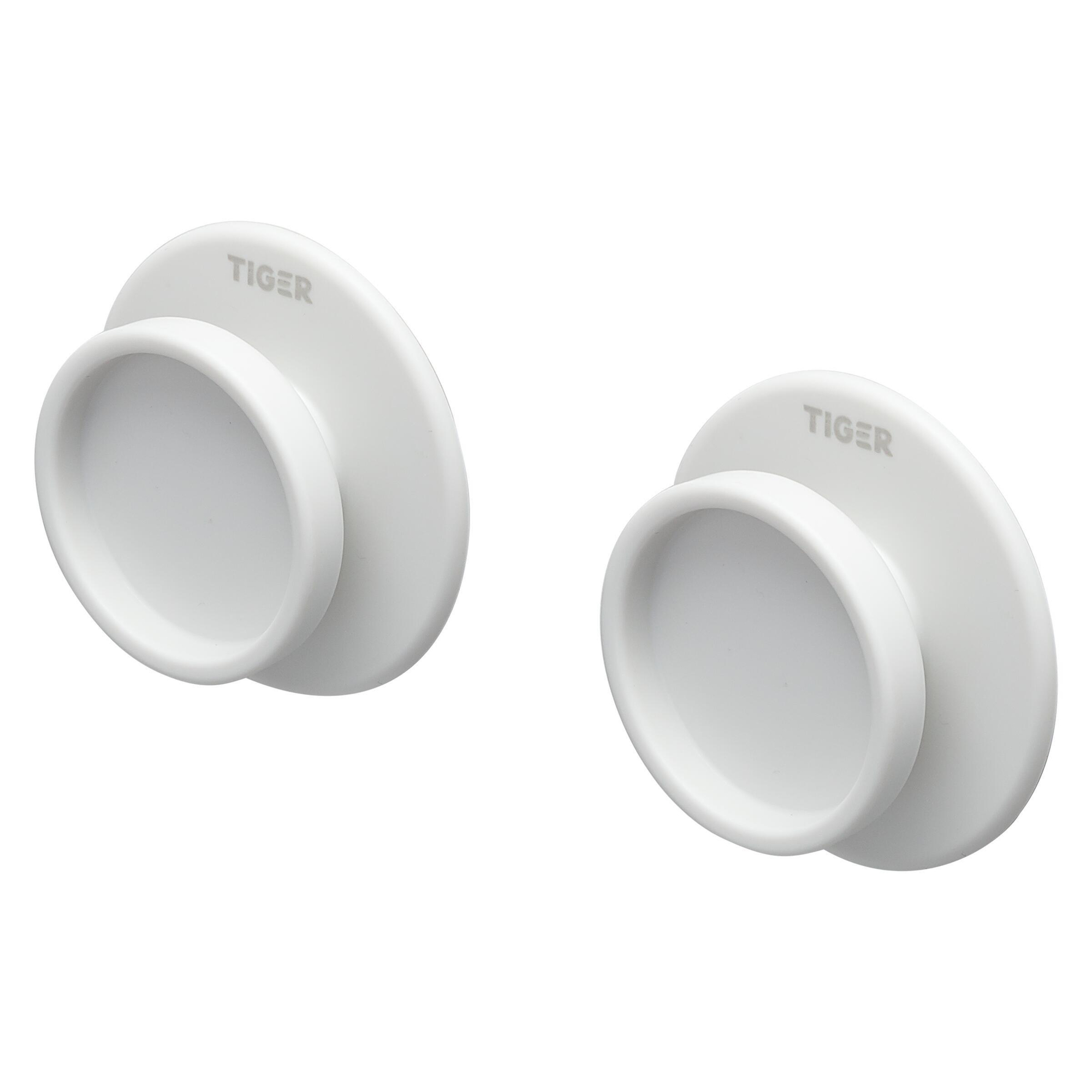Tiger Tess Handdoekhaak - rond - 2 stuks - zelfklevend/boren - wit