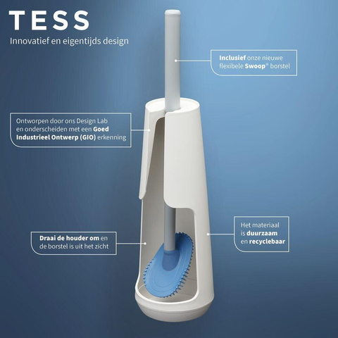 Tiger Tess Toiletborstelhouder vrijstaand met Swoop® borstel flexibel Wit Lichtgrijs