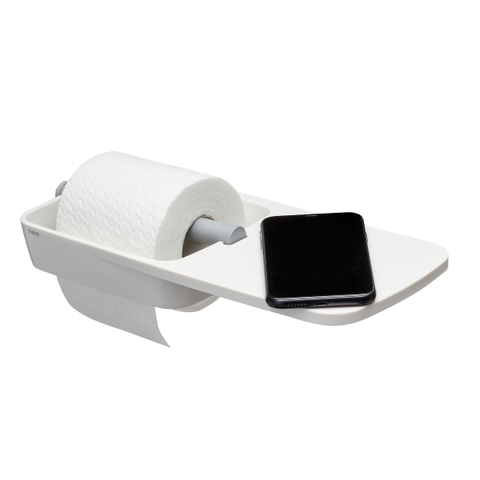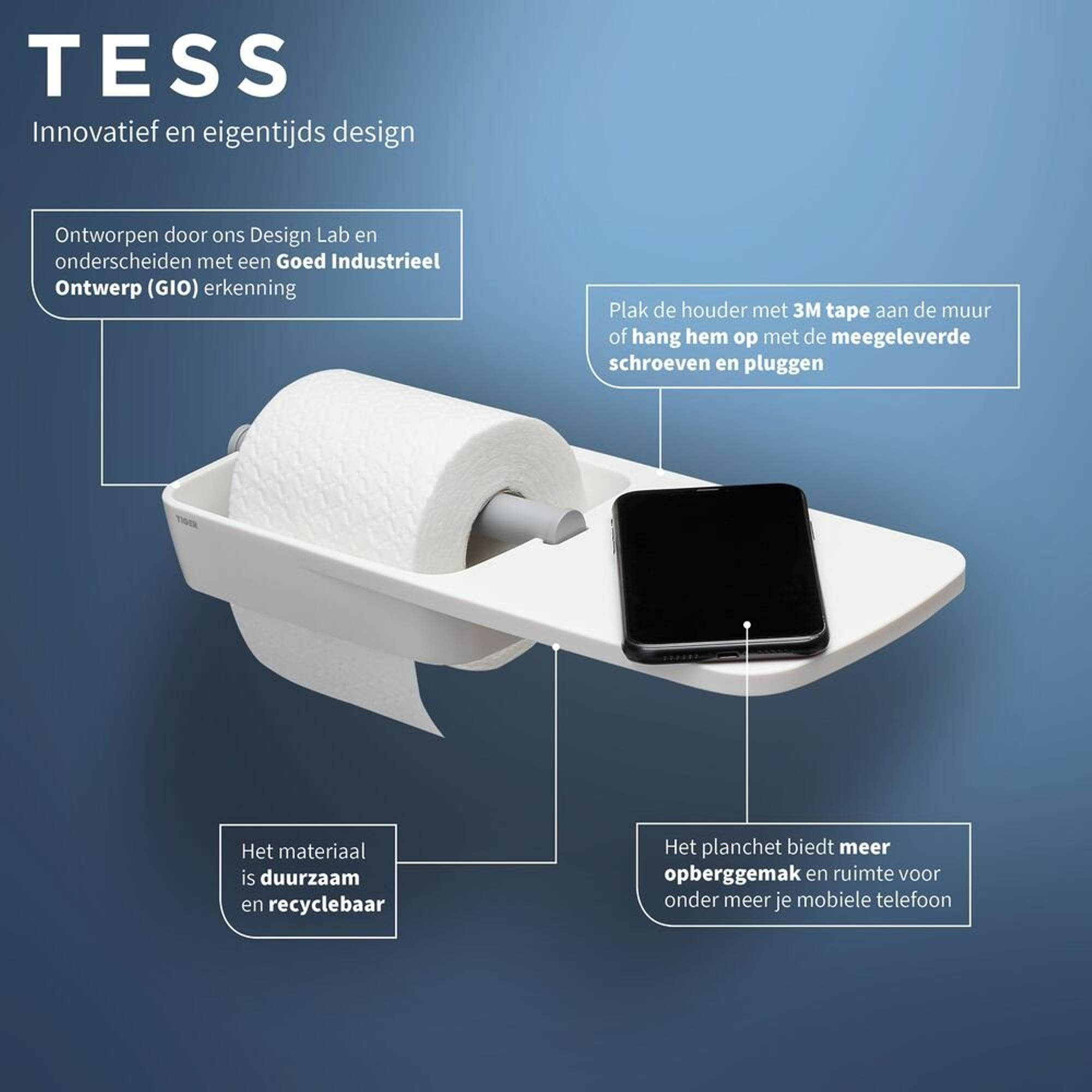 Tiger Tess Toiletrolhouder - met planchet - zelfklevend/boren - wit/lichtgrijs