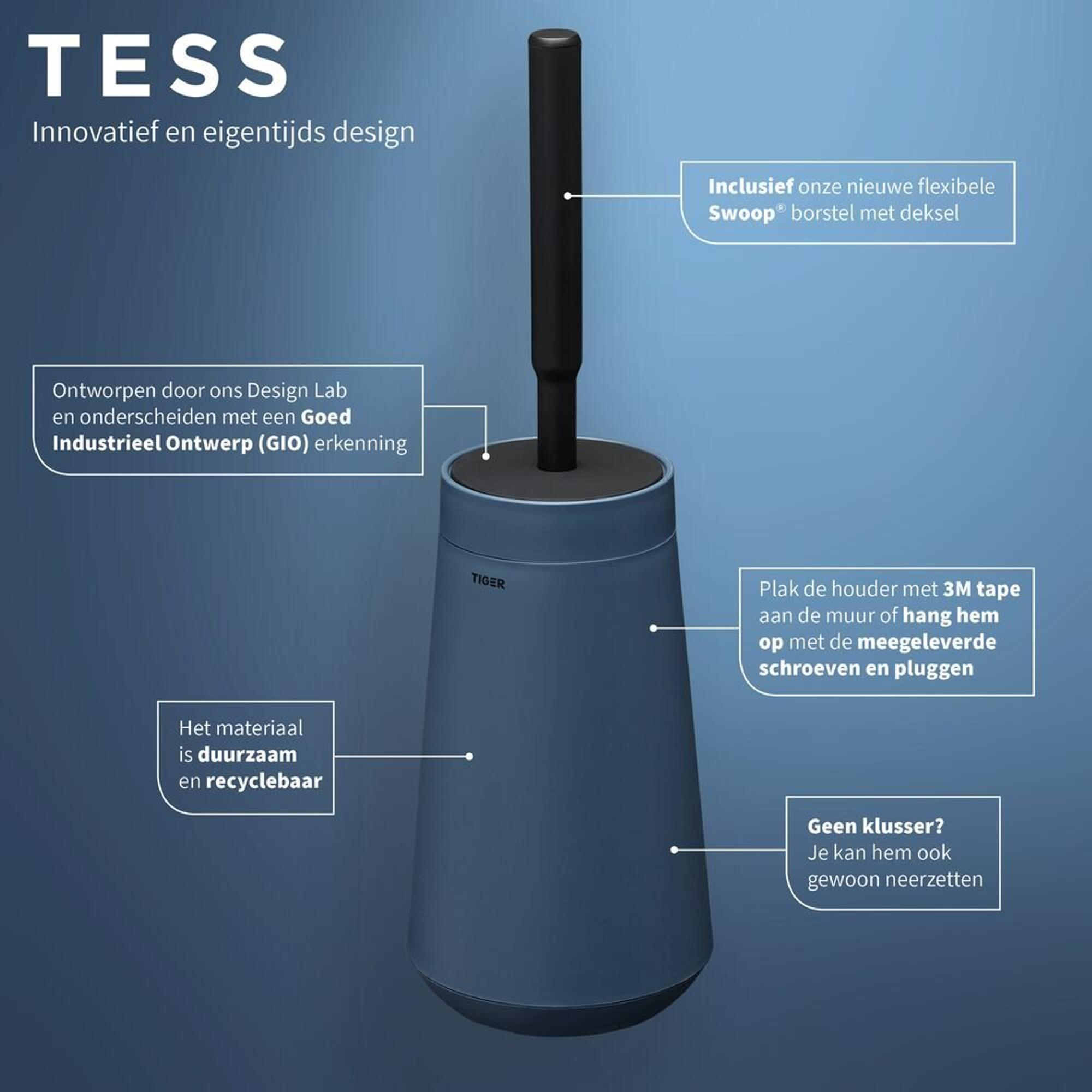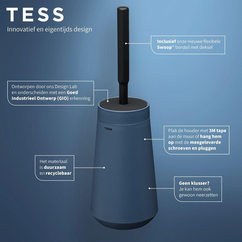 Tiger Tess Toiletborstelhouder met Swoop® borstel flexibel Blauw Zwart