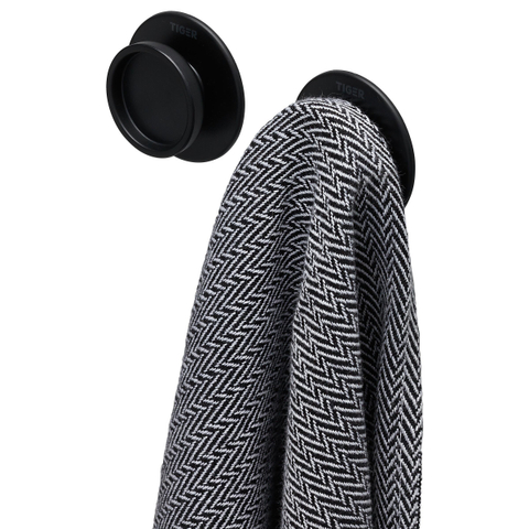 Tiger Tess Handdoekhaak - rond - 2 stuks - zelfklevend - zwart