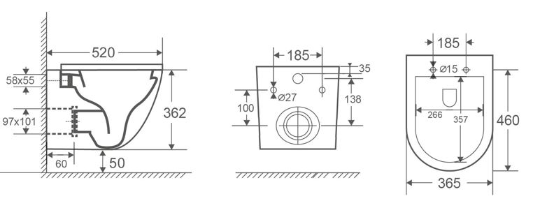 | Hartmaat bevestiging closet | 185 | |