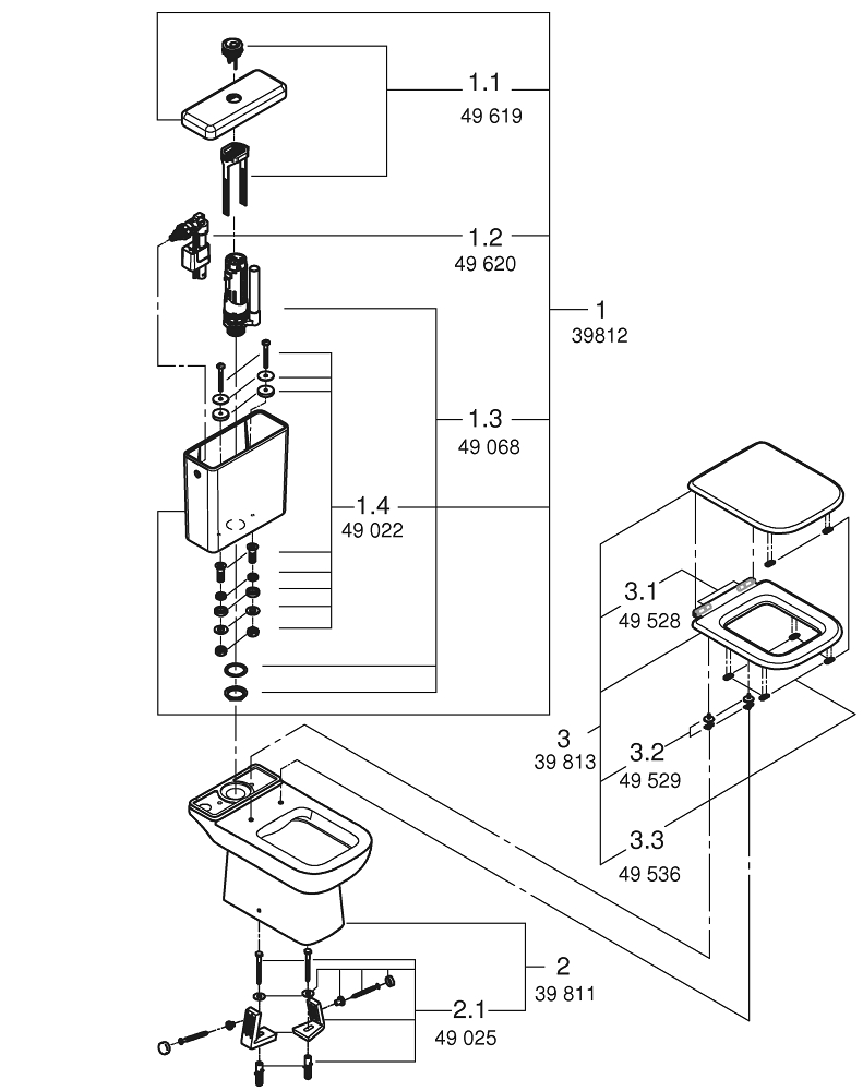 Grohe Start Edgewc pack m. duoblokpot diepspoel rimless inclusief reservoir m. zijaansluiting35.9x66.5x81.5cmm. closetzitting m. softclose en quick releasewit