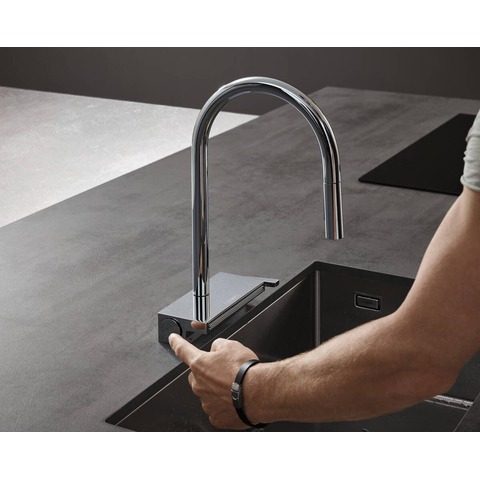 Met de Aquno Select M81 eengreeps keukenmengkraan 170 met uittrekbare vuistdouche, 3 straalsoorten en sBox presenteert hansgrohe een nieuw type keukenmengkraan. Voor iedereen die geen compromissen wil sluiten. Voor iedereen die van perfecte werkprocessen houdt. En voor alle design liefhebbende chef-koks van deze wereld!