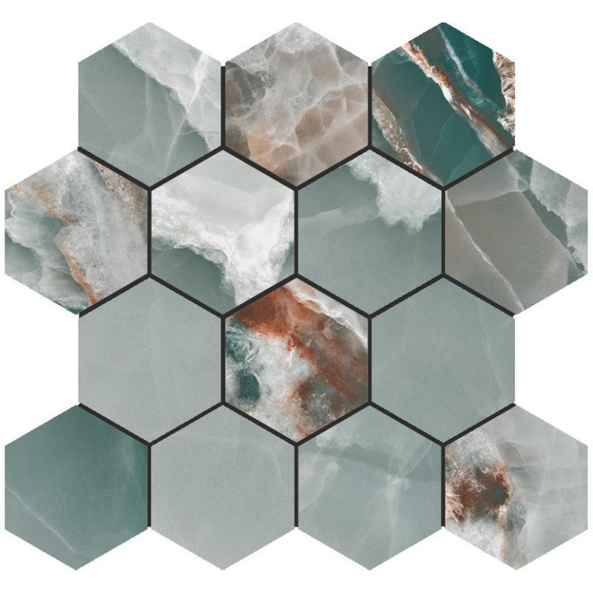 Baldocer Ceramica Onyx wand- en vloertegel - 29x27cm - 9mm - gerectificeerd - glans turquoise