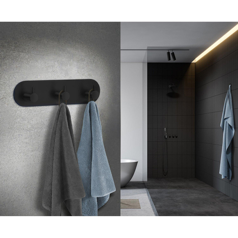 Smedbo Beslagsboden Handdoekhouder - 19x4.8x3cm - zelfklevend - RVS Mat Zwart