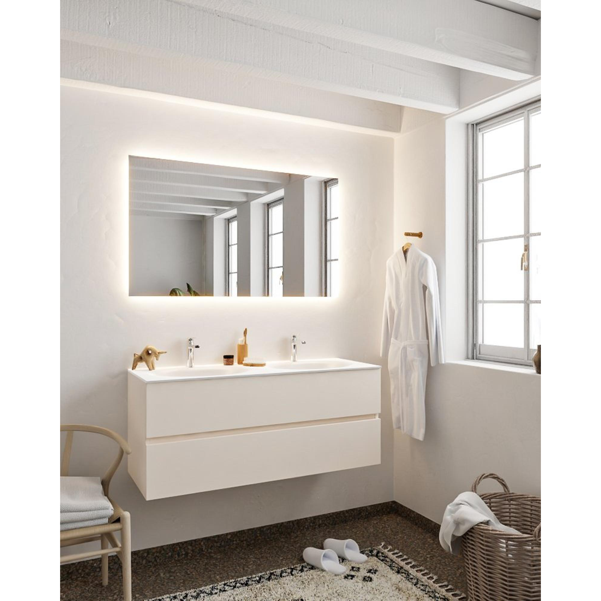 MONDIAZ VICA 120cm badmeubel linen 2 lades wastafel MOON dubbel met 2 kraangaten