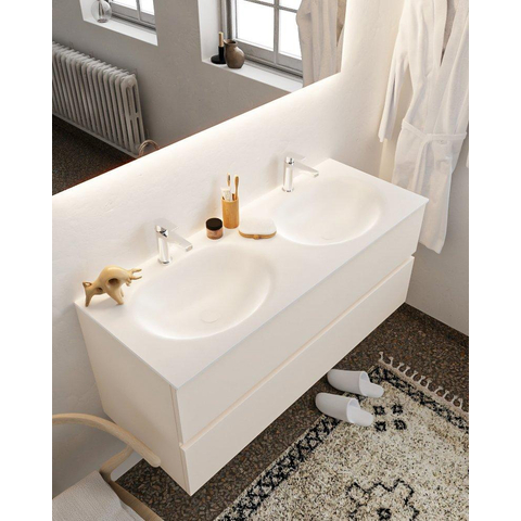 MONDIAZ VICA Badkamermeubelset - 120cm - 2 lades - wasbak Moon dubbel - 2 kraangaten - solid surface linen TWEEDEKANS