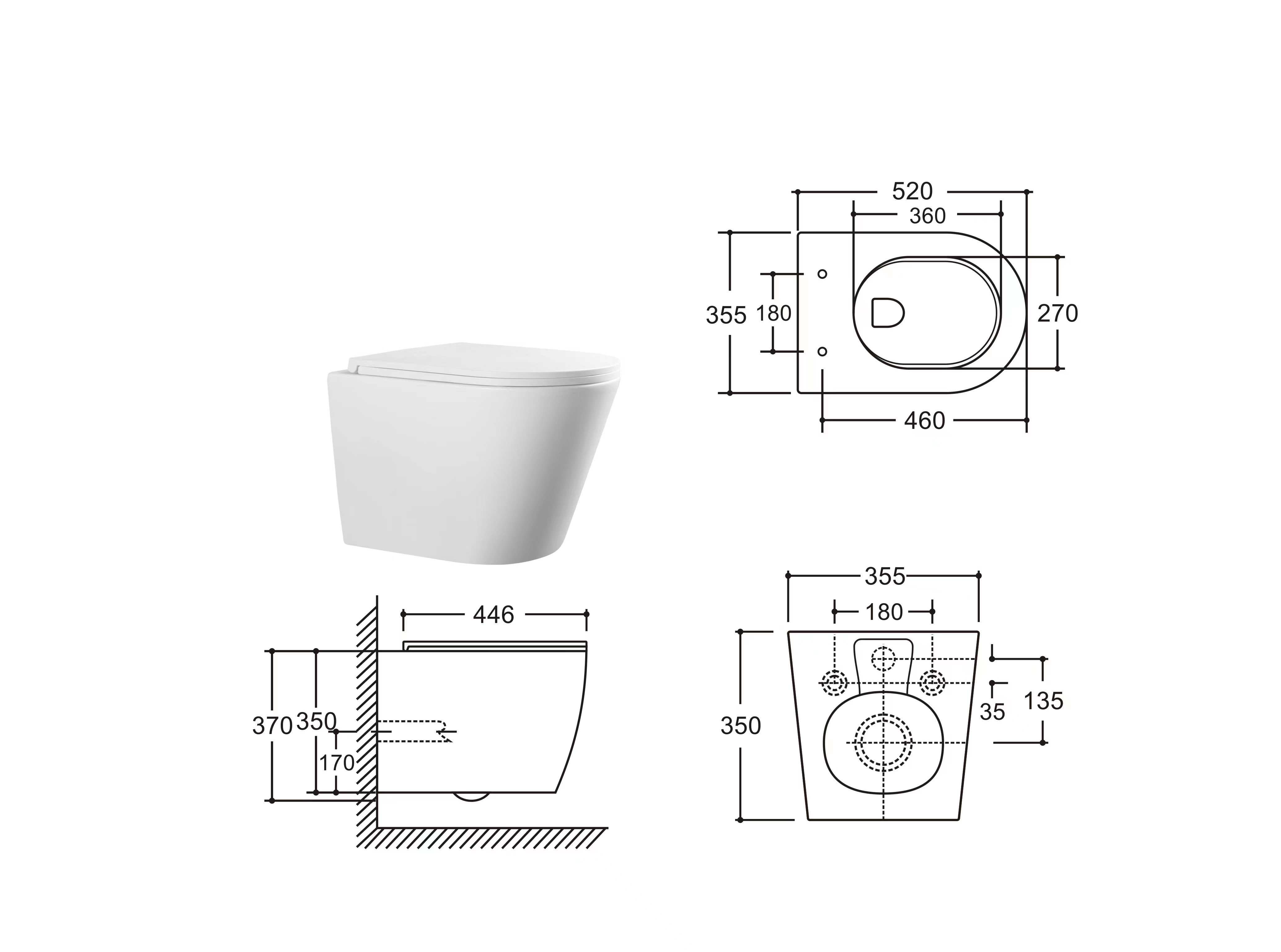 FugaFlow Efficiente Anta Toilet Wandclosetpack - diepspoel - rimless - 36.3x51.7cm softclose - zitting - mat wit