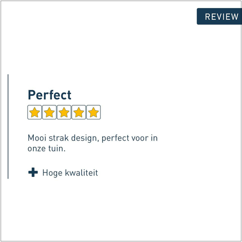 Toch niet helemaal tevreden over dit product? Geen zorgen! Je kunt het ontvangen product (m.u.v. tegels) retour sturen binnen 30 dagen na ontvangst.