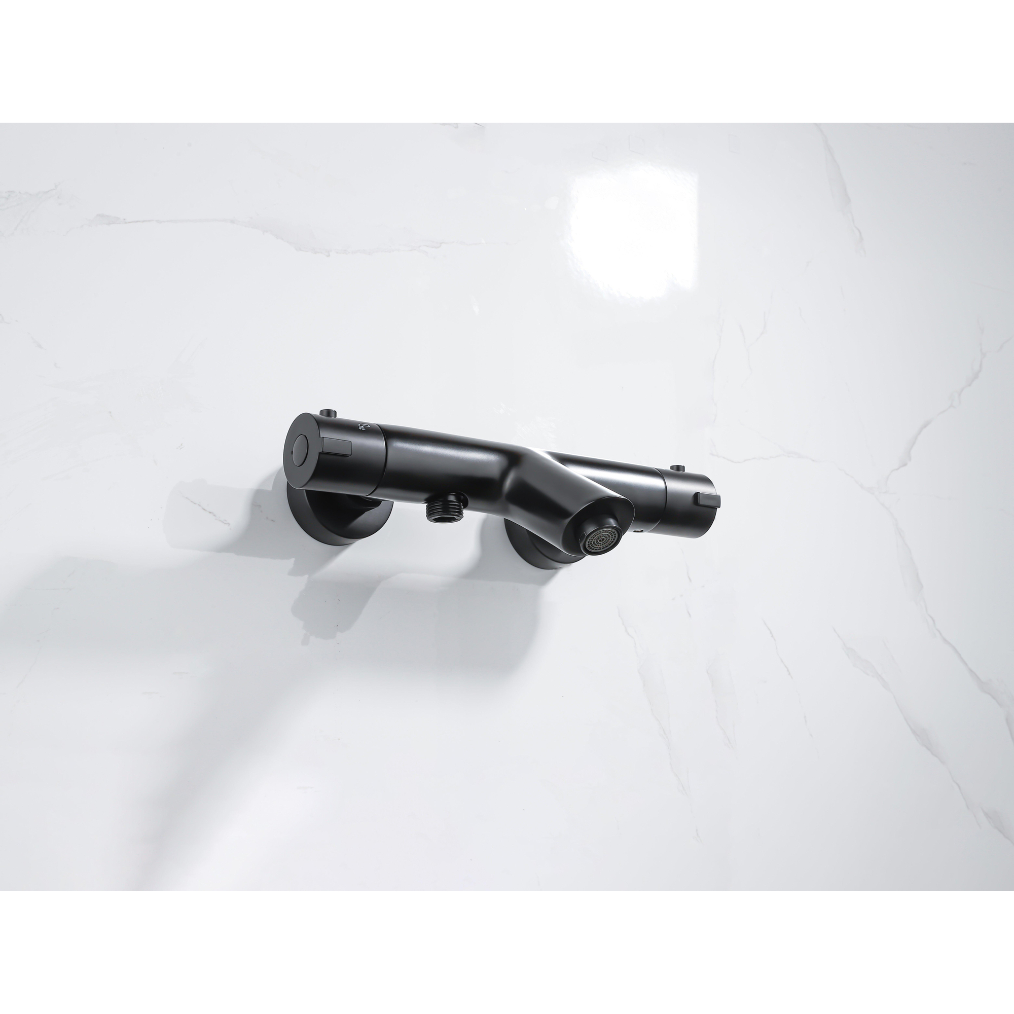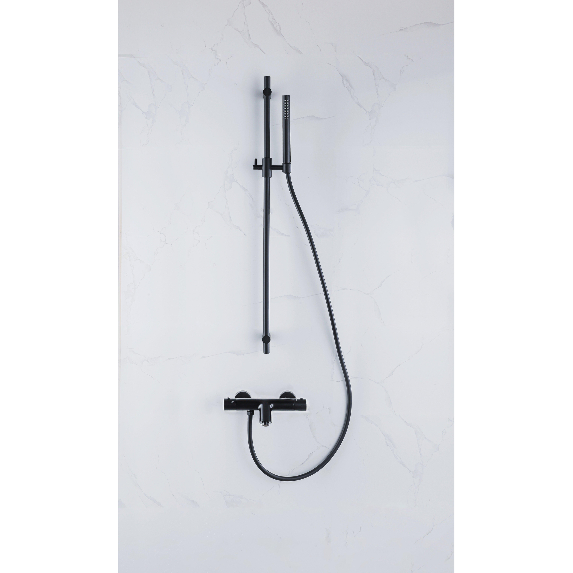 De FugaFlow Thermostatische Bad-Douchekraan in zwart straalt een tijdloze elegantie uit die perfect past bij zowel moderne als klassieke badkamers. Het slanke ontwerp en de zwarte afwerking voegen een vleugje luxe toe aan elke badkamer. Met zijn ergonomische handgrepen en soepele bediening, is deze kraan niet alleen een lust voor het oog, maar ook zeer praktisch in gebruik.