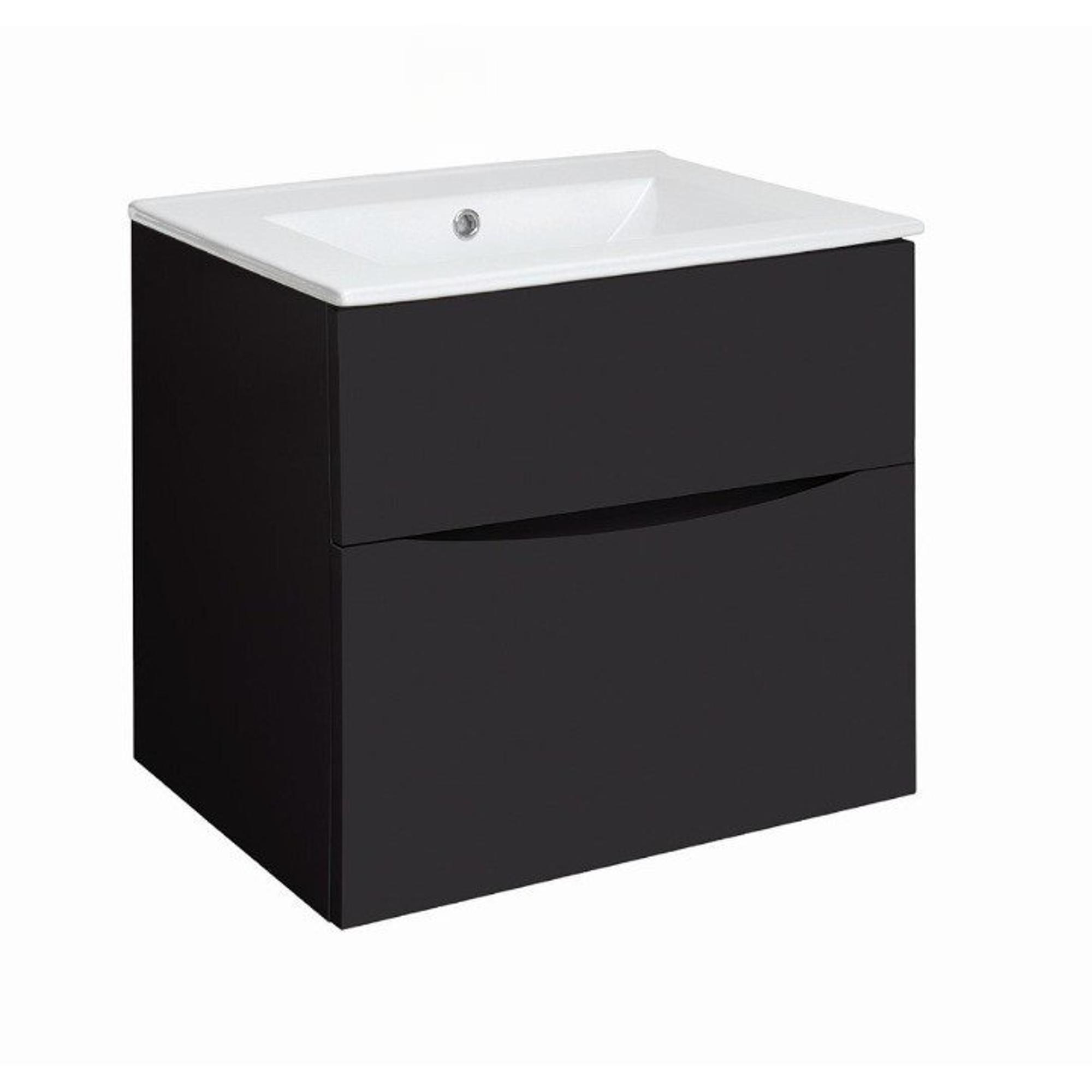 Crosswater Glide II Badmeubelset - 60x45x52cm - 2 lades - greeploos - Black Matt - wastafel - ice white
