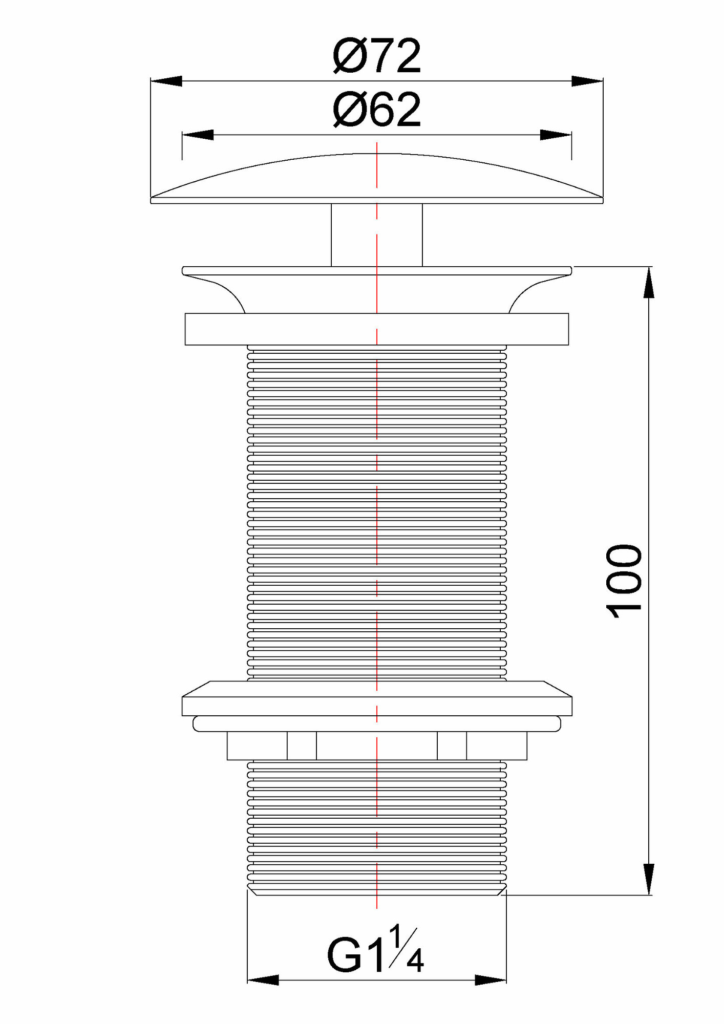 Wiesbaden Caral open afvoerplug verlengd 5/4" geborsteld messing