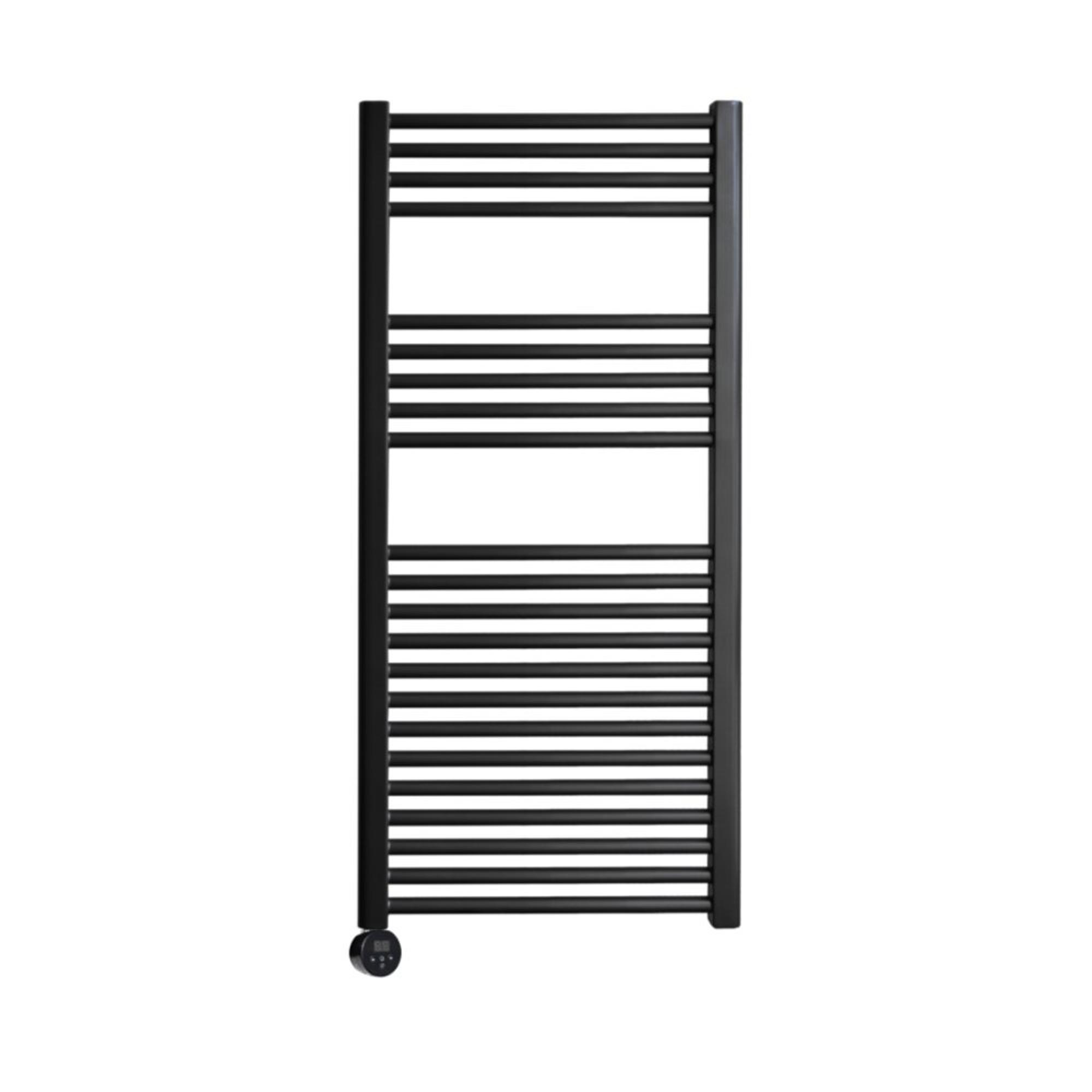 Sanicare Elektrische Design Radiator - 111.8 x 60 cm - 730 Watt - thermostaat chroom linksonder - mat zwart