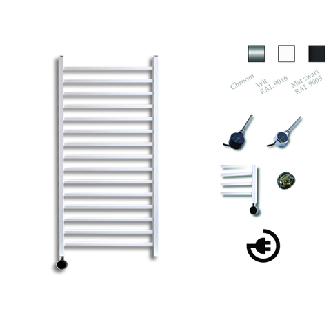 Sanicare Qubic Elektrische Design Radiator - 126.4 x 60 cm - 773 Watt - thermostaat chroom linksonder - wit