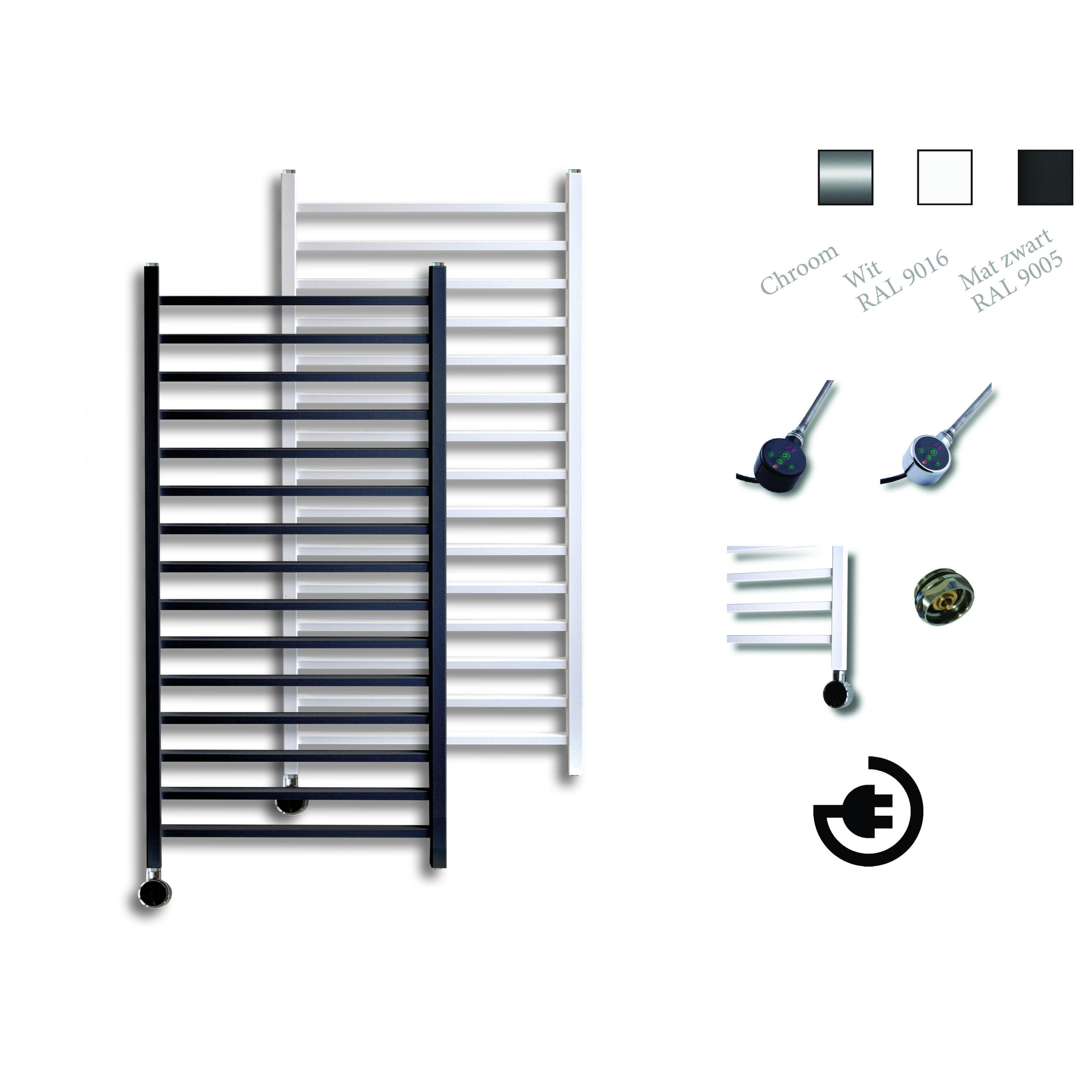 Sanicare Qubic Elektrische Design Radiator - 126.4 x 60 cm - 773 Watt - thermostaat chroom linksonder - mat zwart