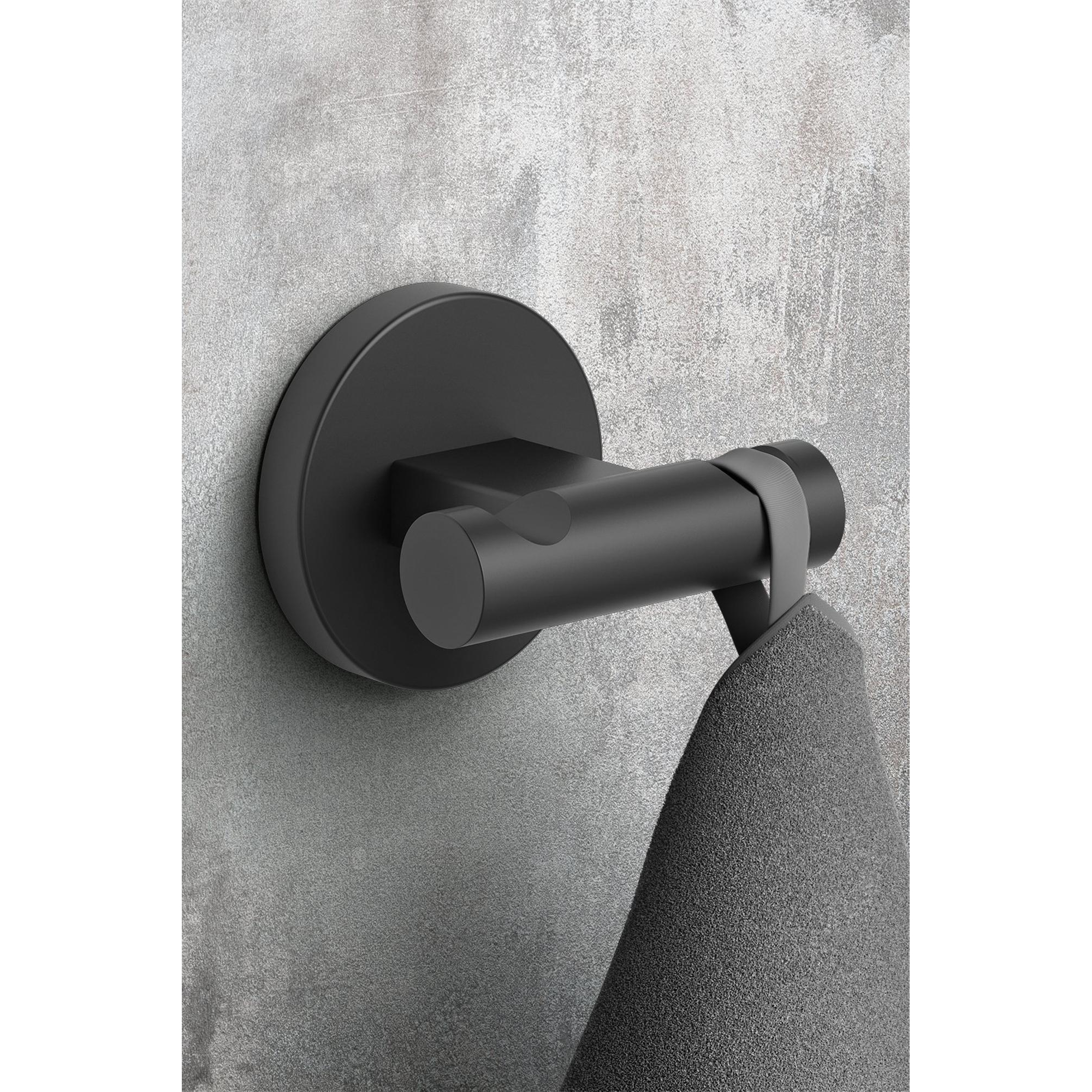 De Zack SCALA Handdoekhaak straalt een moderne en minimalistische uitstraling uit die perfect past bij hedendaagse badkamers. Het strakke ontwerp en de zwarte afwerking creëren een tijdloze esthetiek die zowel functioneel als decoratief is. Deze handdoekhaak voegt een vleugje elegantie toe aan elke badkamer en biedt een handige oplossing voor het ophangen van handdoeken.