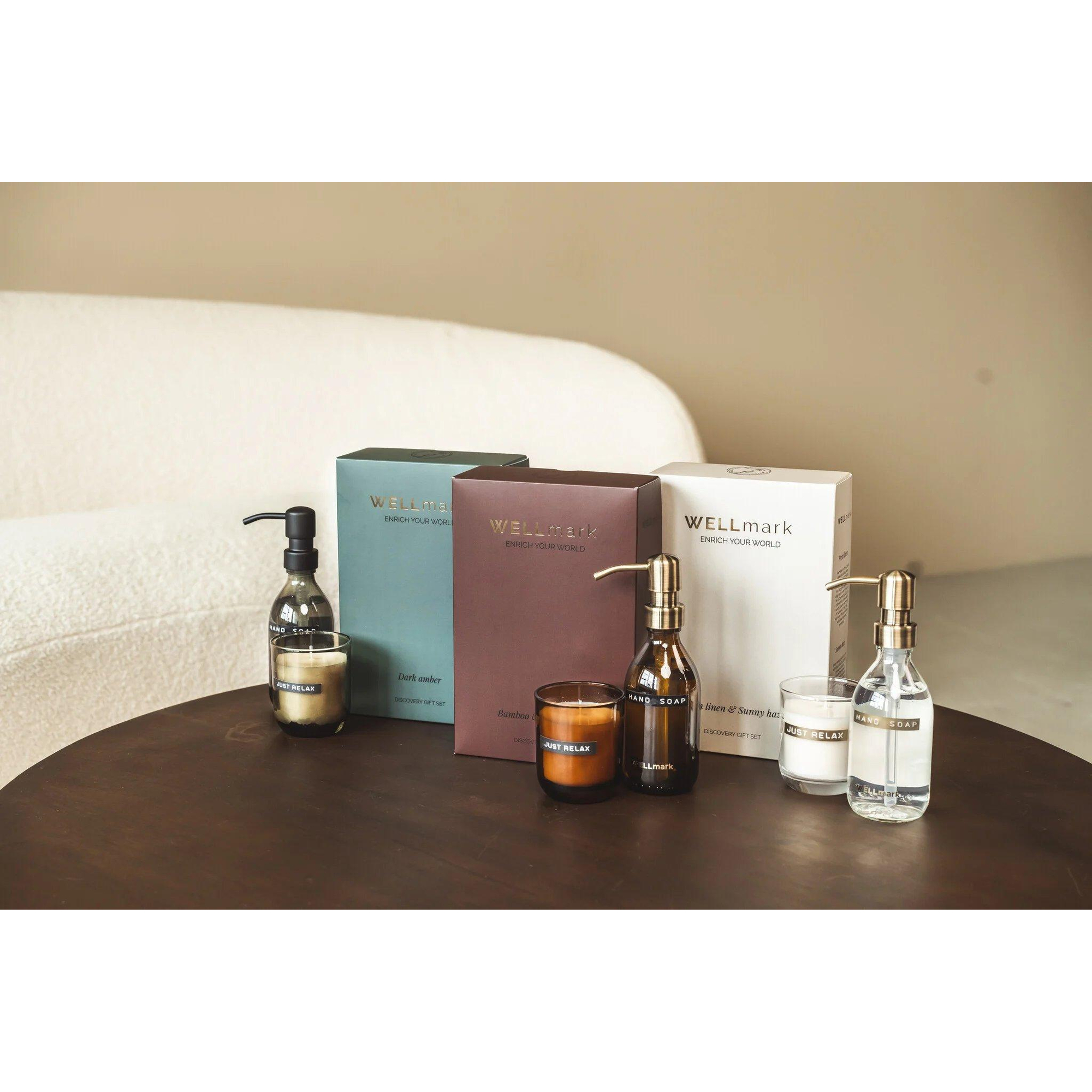 Ontdek de prachtige Wellmark Discover giftset, bestaande uit een handzeep en geurkaars in een elegant bruin glazen design. Deze luxueuze set voegt een vleugje stijl toe aan jouw badkamer of keuken en biedt een heerlijke geurervaring. Perfect om jezelf te verwennen of als geschenk voor een geliefde.