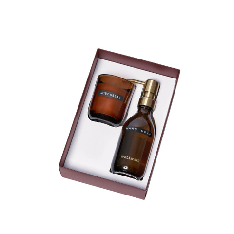 Wellmark Discover giftset - handzeep en geurkaars - bruin glas
