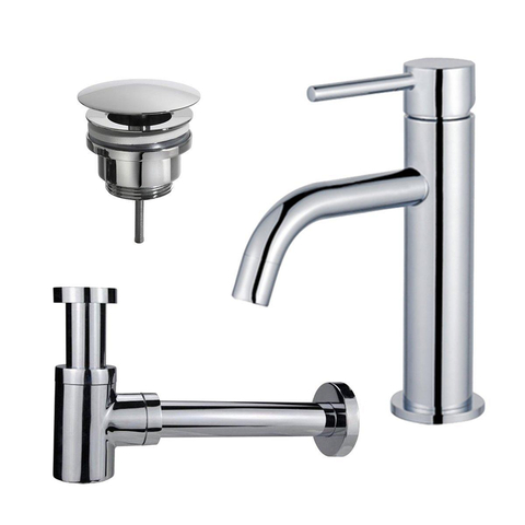 Fortifura Calvi Slim Wastafelkraanset - lage wastafelkraan - always open plug - verlaagde design sifon - Chroom