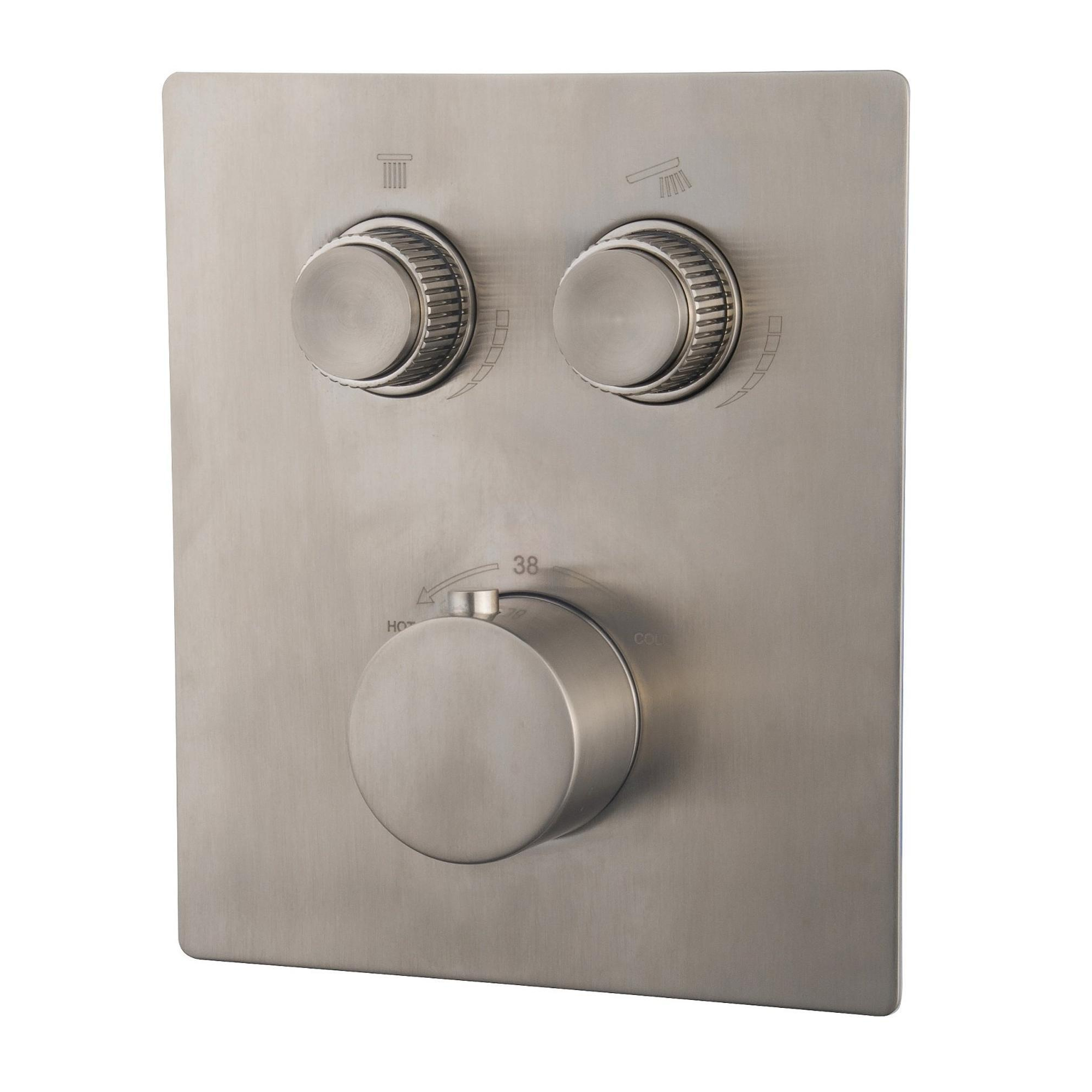 De Wiesbaden Caral doucheset is een prachtige toevoeging aan elke badkamer, met zijn elegante ontwerp en hoogwaardige afwerking. Deze set biedt zowel een handdouche met 3 standen als een royale hoofddouche van 25 cm, allemaal vervaardigd uit geborsteld roestvrij staal. Met de inbegrepen garnituur is deze doucheset compleet en klaar voor installatie, waardoor je kunt genieten van een luxe douche-ervaring in stijl.