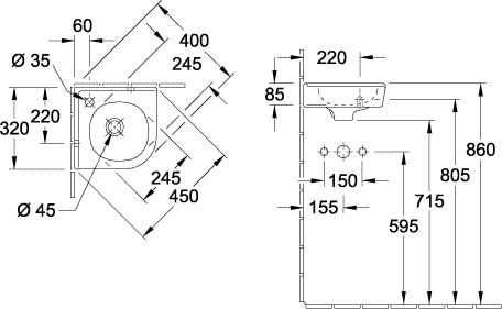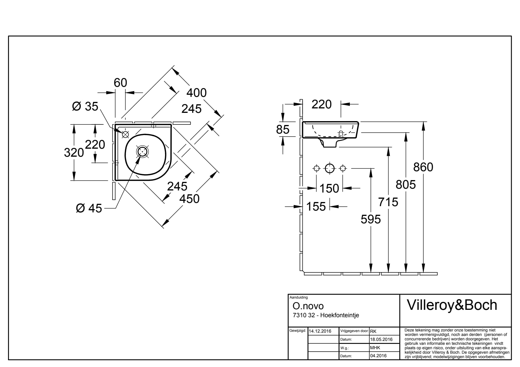 Villeroy & Boch O.novo hoekfontein volledige set SHOWROOMMODEL