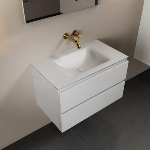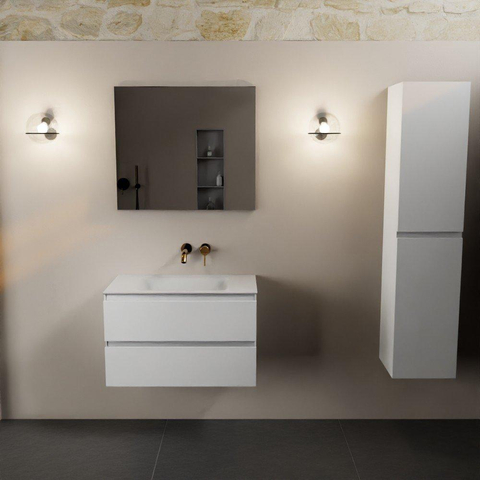 Mondiaz Aivy badmeubelset - 80x45x50cm - 0 kraangaten - 1 wasbak talc Solid surface - Midden - 2 lades - Met spiegel - MDF Talc