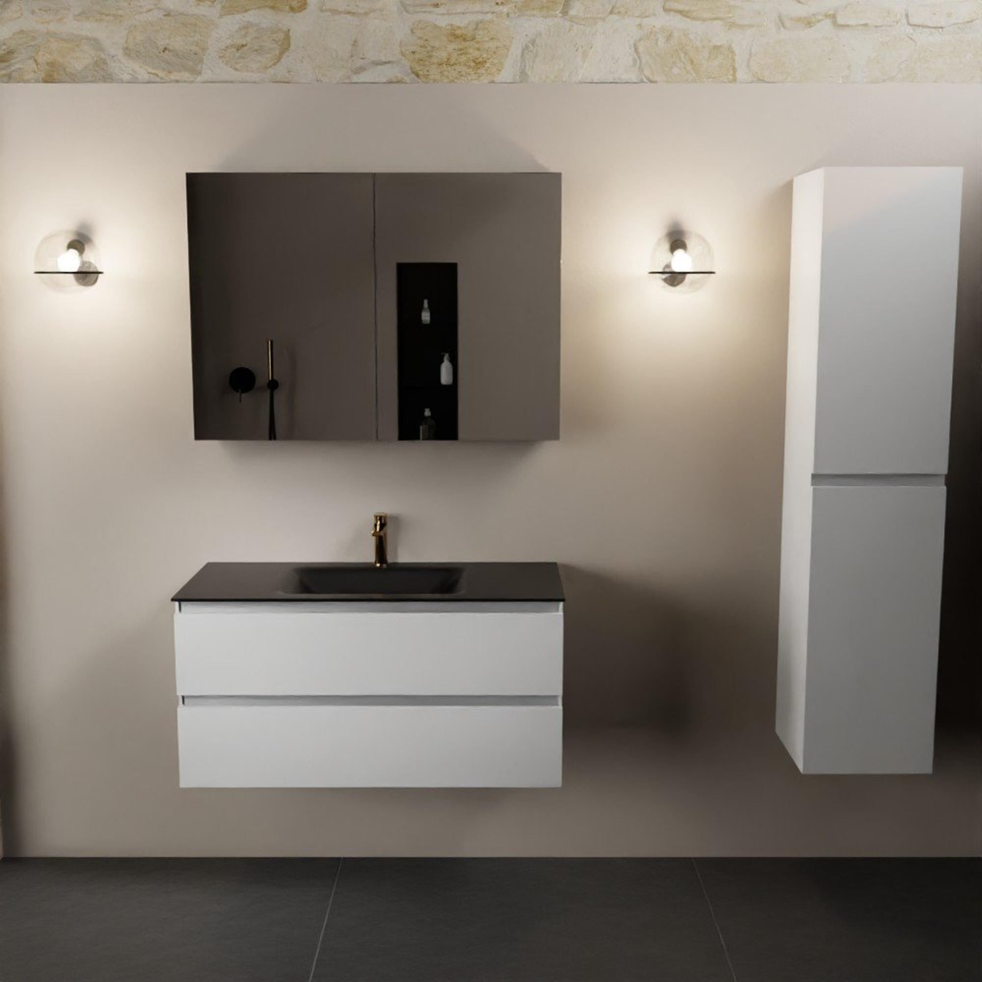 Mondiaz Aivy badmeubelset - 100x45x50cm - 1 kraangat - 1 wasbak urban Solid surface - Midden - 2 lades - Met spiegelkast - MDF Talc