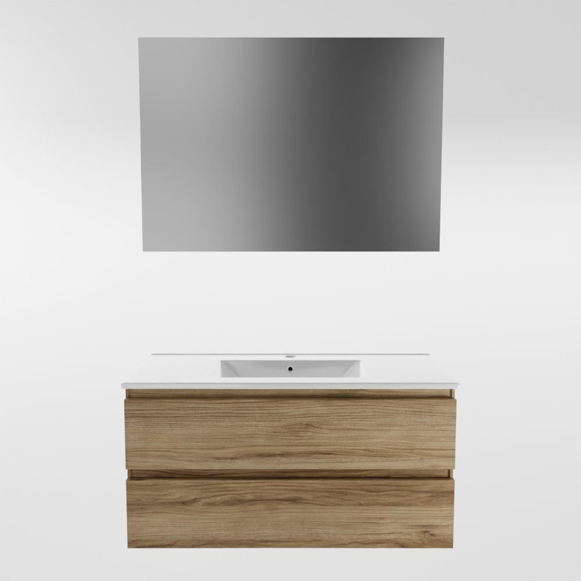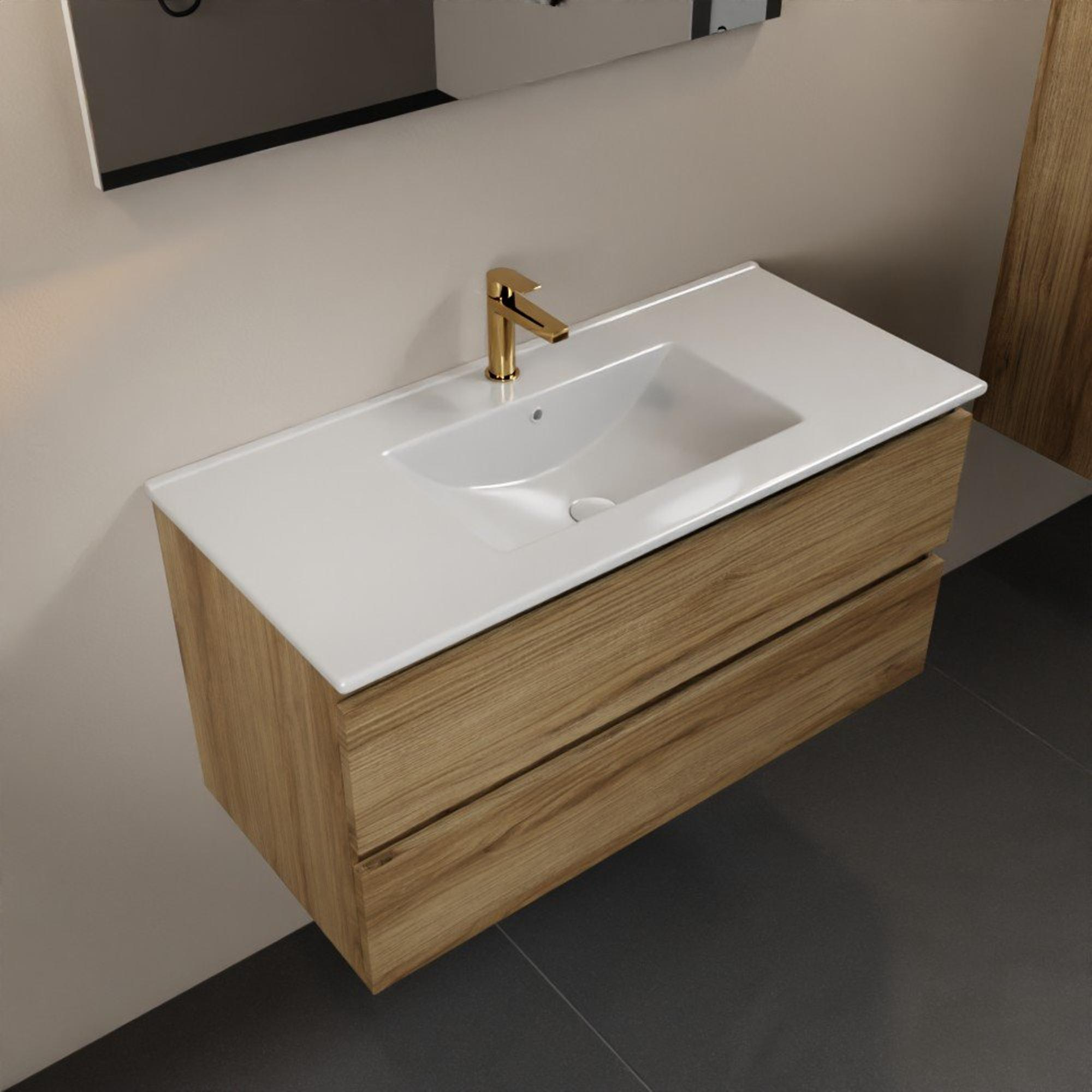 Mondiaz Aivy badmeubelset - 100x45x50cm - 1 kraangat - 1 wasbak talc Keramiek - Midden - 2 lades - Zonder spiegel - Melamine Chai