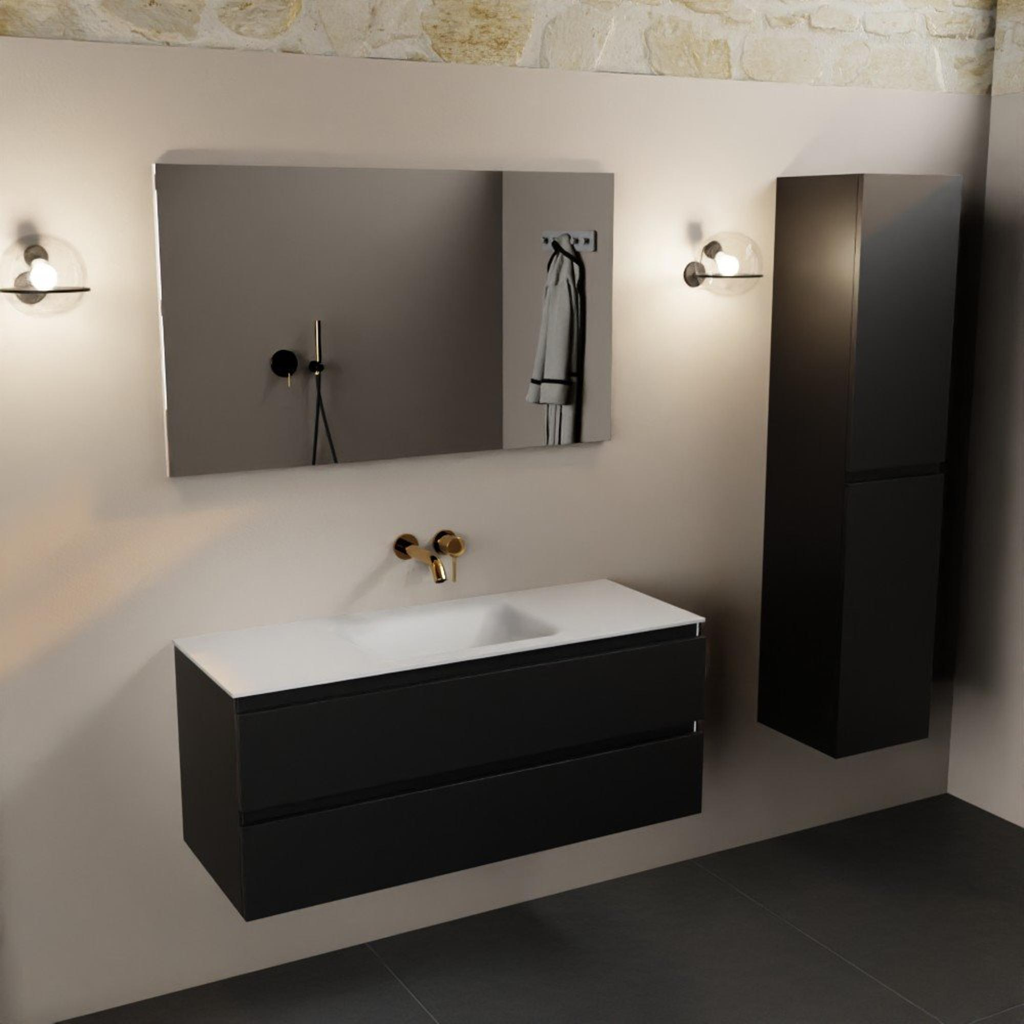 Mondiaz Aivy badmeubelset - 120x45x50cm - 0 kraangaten - 1 wasbak talc Solid surface - Midden - 2 lades - Met spiegel - MDF Urban