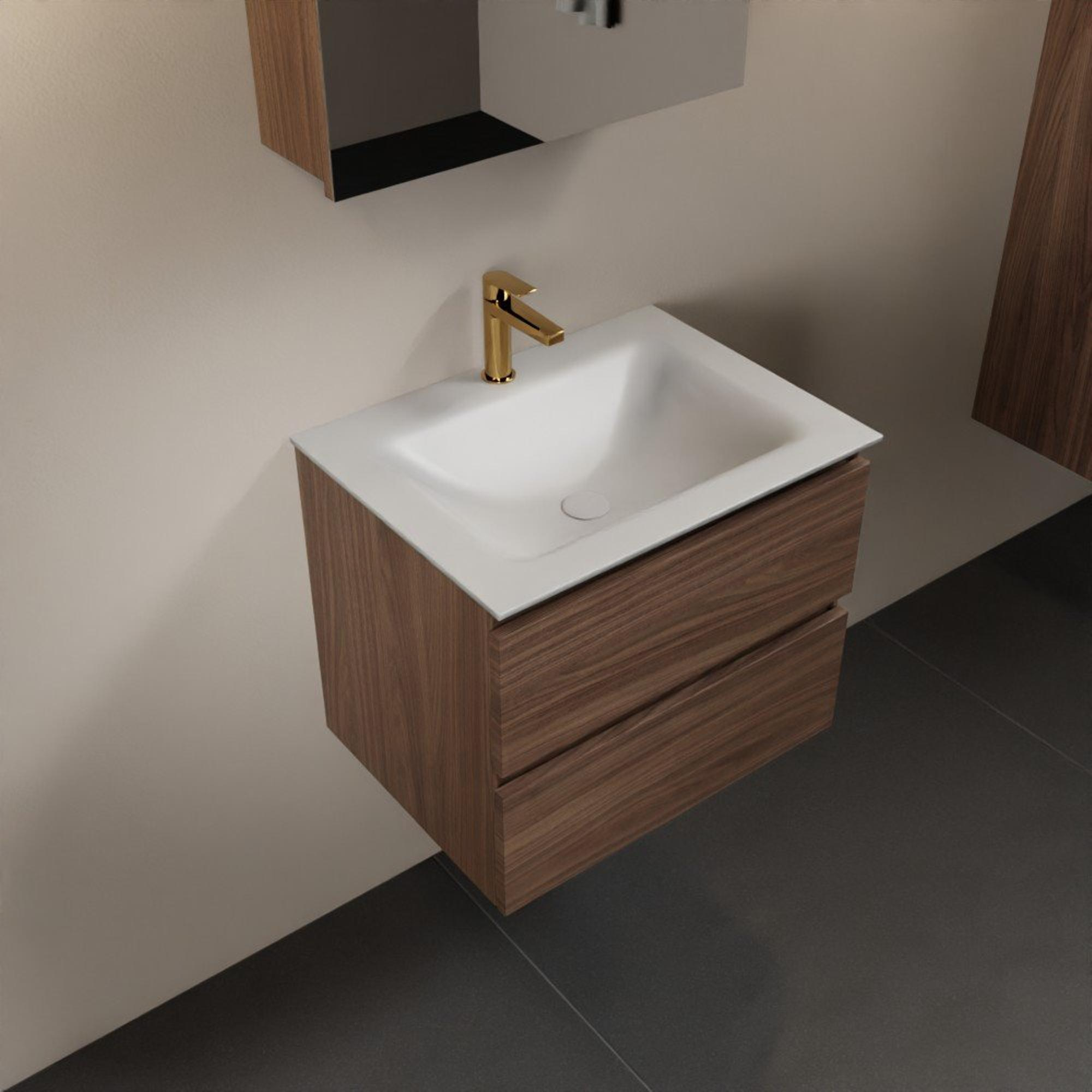 Mondiaz Aivy badmeubelset - 60x45x50cm - 1 kraangat - 1 wasbak talc Solid surface - Midden - 2 lades - Met spiegelkast - Melamine Mocha