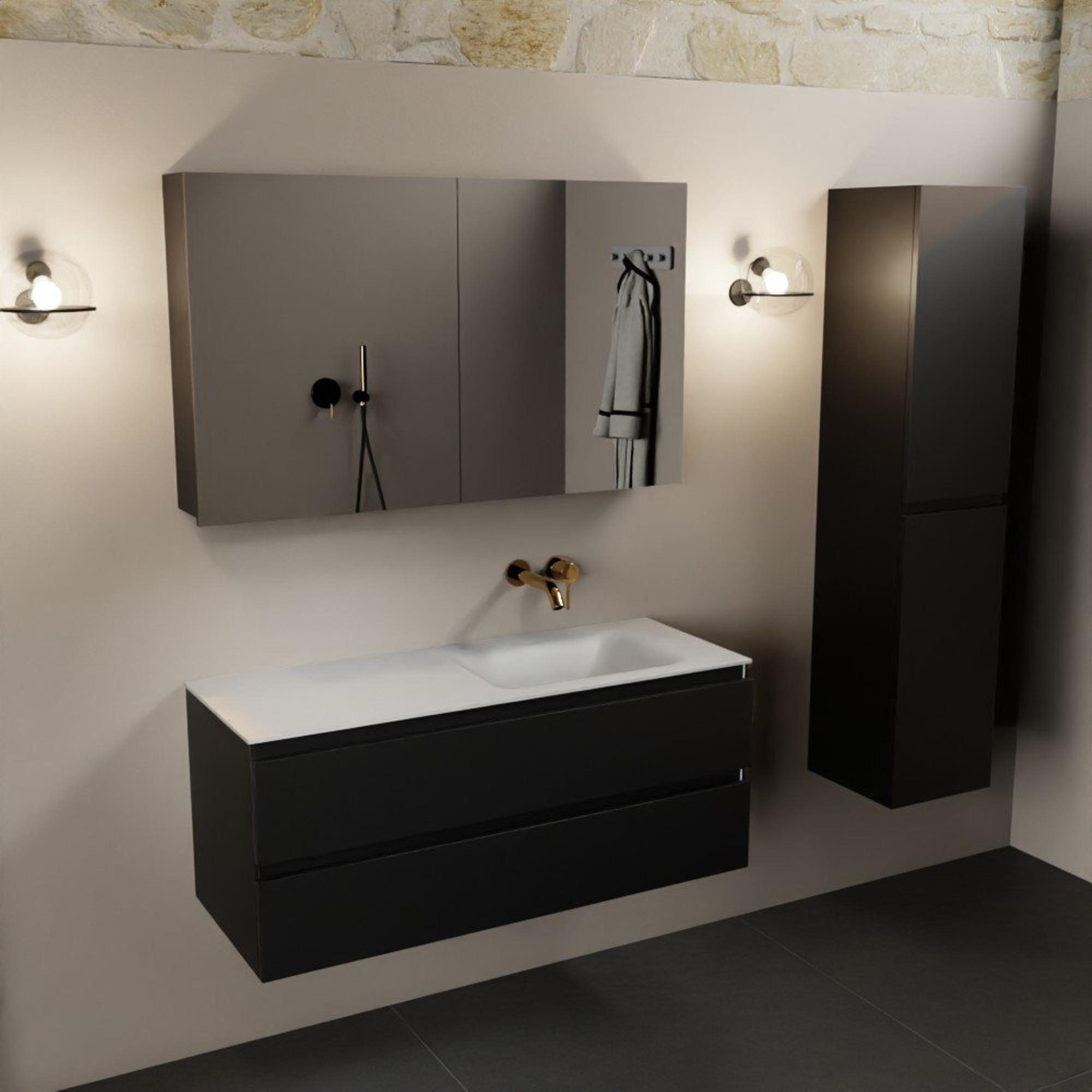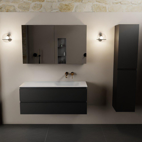 Mondiaz Aivy badmeubelset - 120x45x50cm - 0 kraangaten - 1 wasbak talc Solid surface - Rechts - 2 lades - Met spiegelkast - MDF Urban
