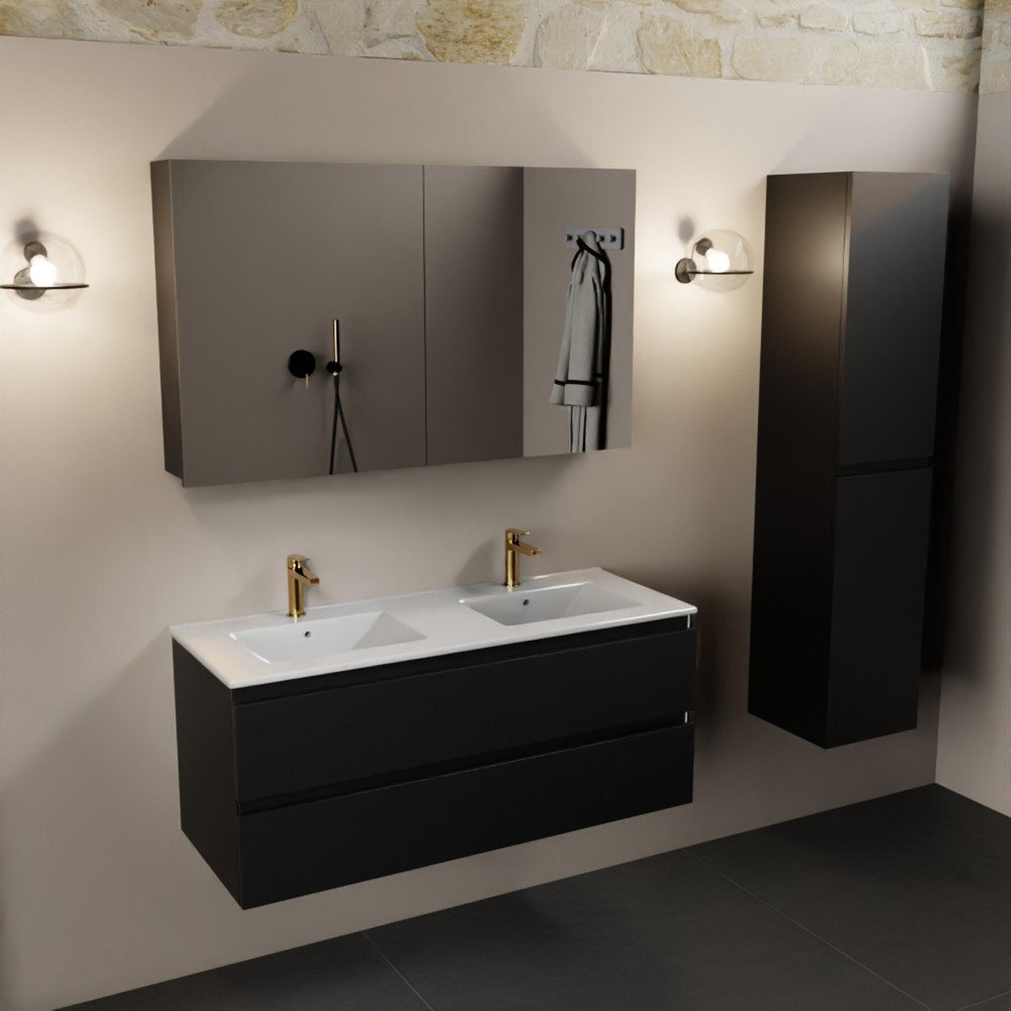 Mondiaz Aivy badmeubelset - 120x45x50cm - 2 kraangaten - 2 wasbakken talc Keramiek - Links en rechts - 2 lades - Met spiegelkast - MDF Urban