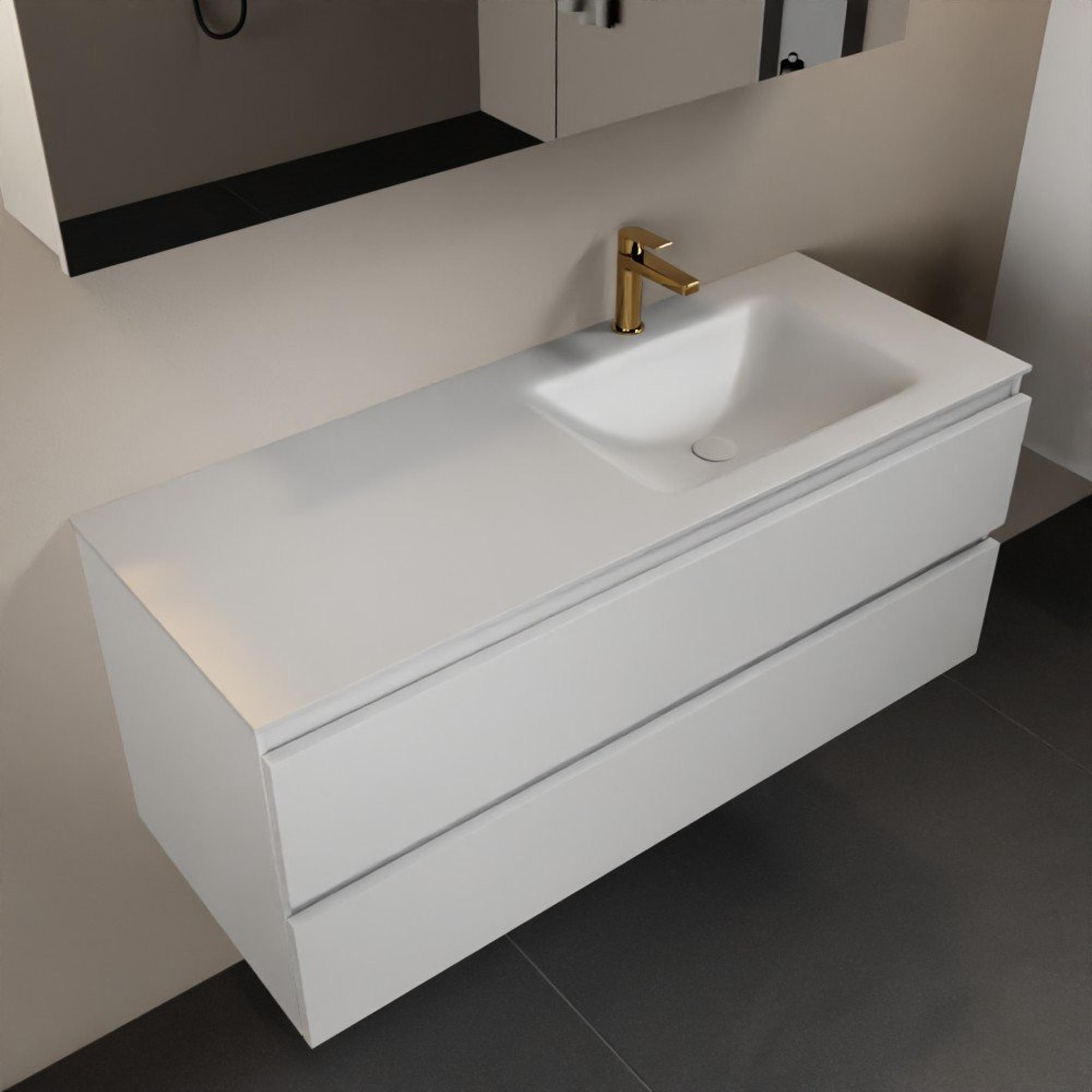 Mondiaz Aivy badmeubelset - 120x45x50cm - 1 kraangat - 1 wasbak talc Solid surface - Rechts - 2 lades - Met spiegelkast - MDF Talc