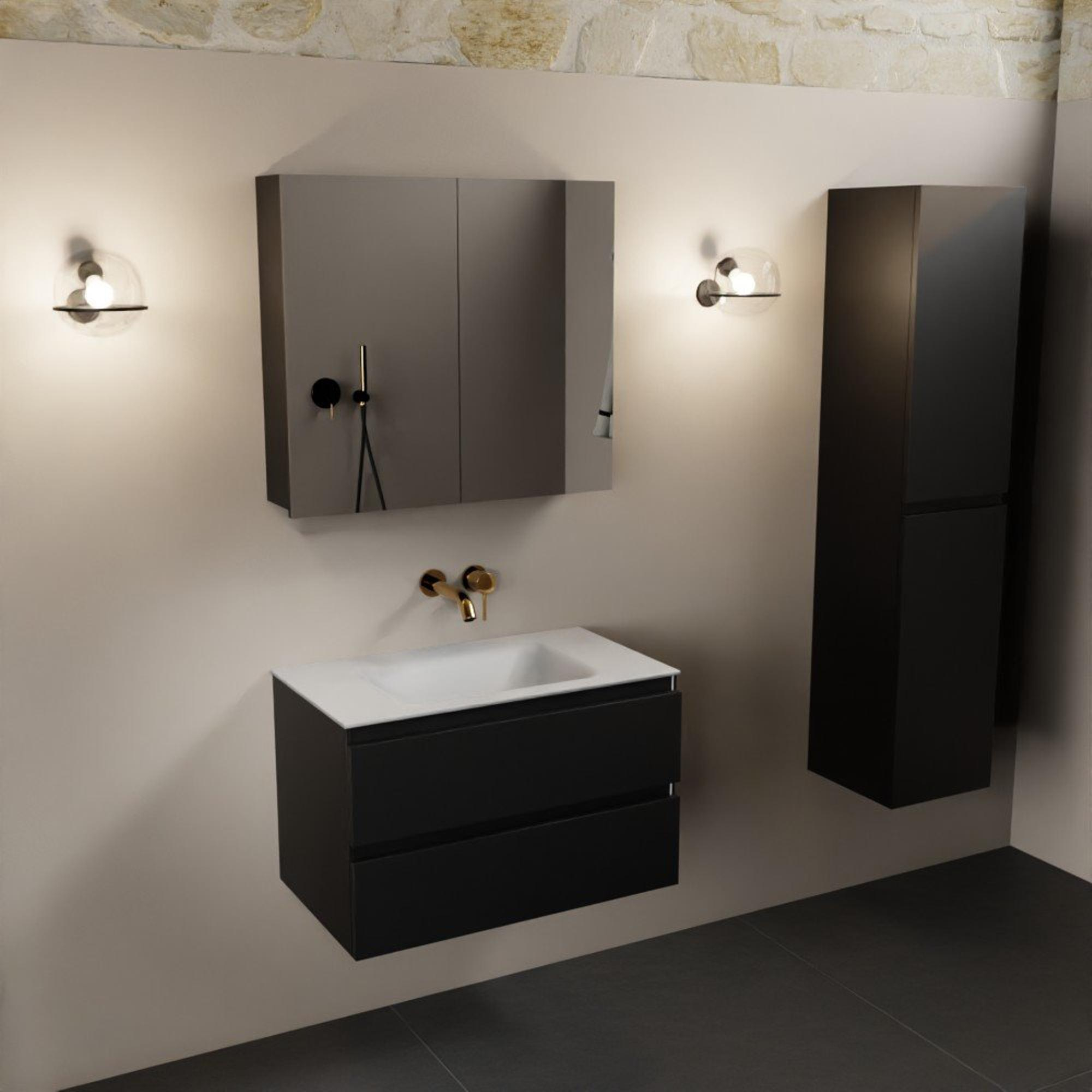 Mondiaz Aivy badmeubelset - 80x45x50cm - 0 kraangaten - 1 wasbak talc Solid surface - Midden - 2 lades - Met spiegelkast - MDF Urban