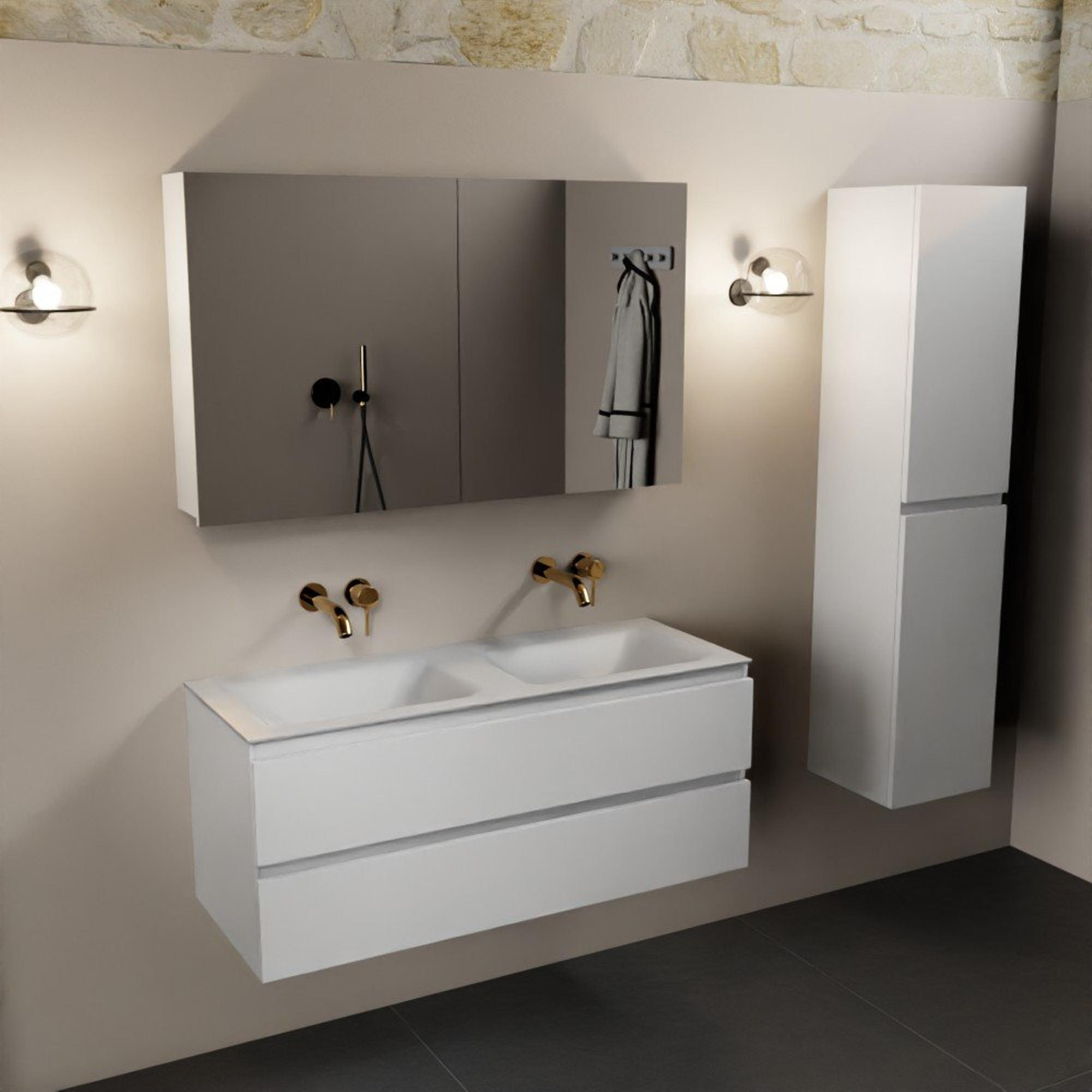 Mondiaz Aivy badmeubelset - 120x45x50cm - 0 kraangaten - 2 wasbakken talc Solid surface - Links en rechts - 2 lades - Met spiegelkast - MDF Talc